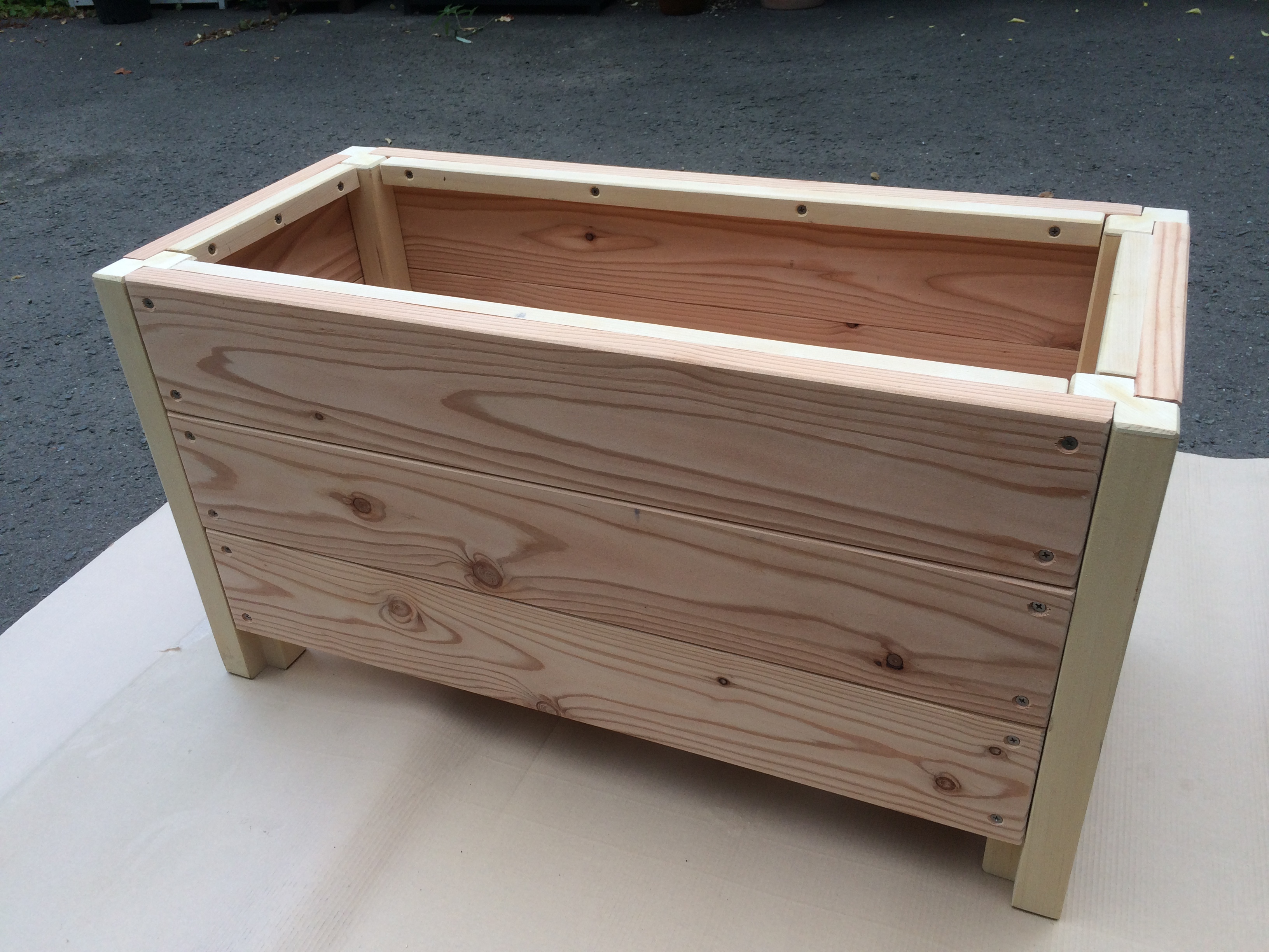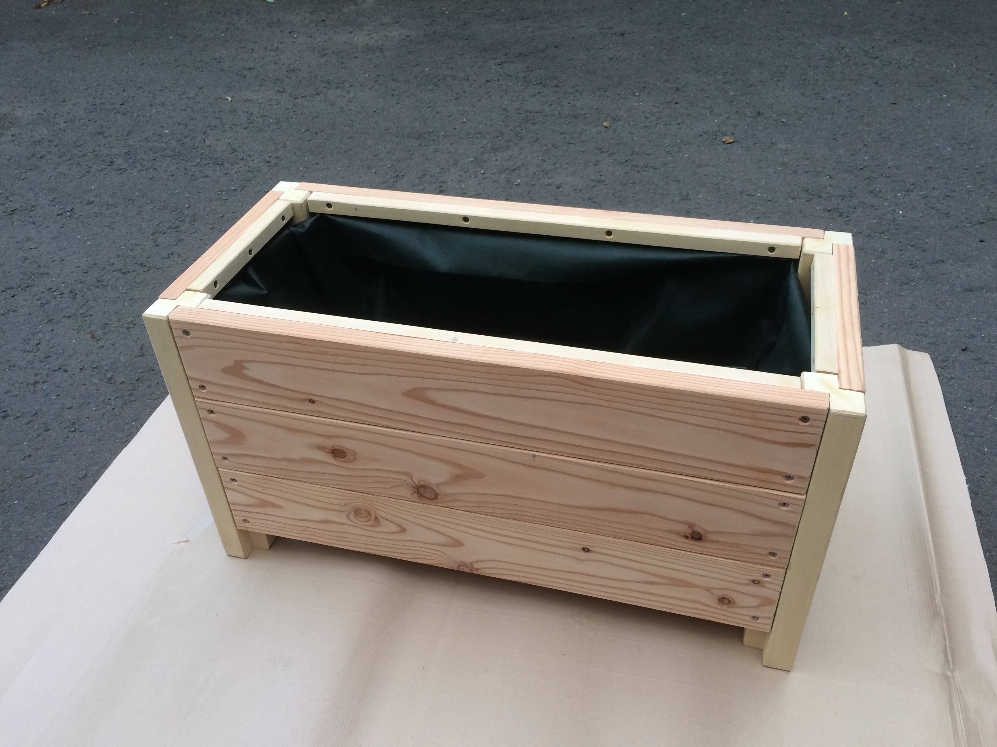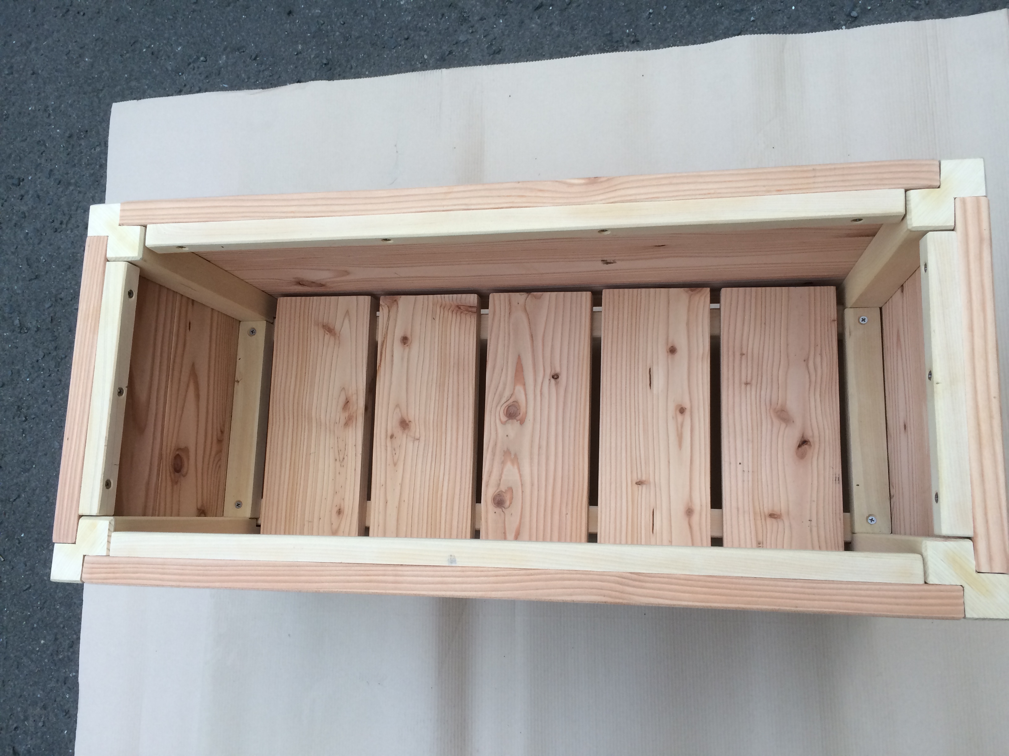 国産木材で作られる木製プランター。屋外で使用する国産木製品は耐久性が短いということで敬遠され、都市プランターの殆どはプラスチック製となった。試行錯誤により、素材選択、構造設計、使用方法の研究により約10年間にわたって使用することが可能な国産材木製プランターができた。