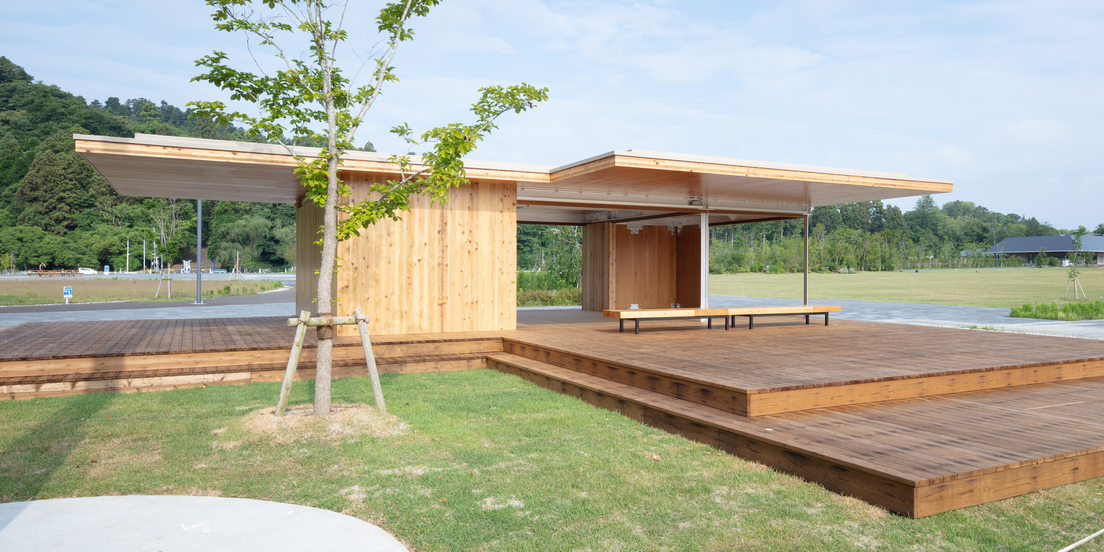 本施設はイベントで使用した仮設建築を東屋として常設化したものである。施設は容易に運搬・移設できる「可変型CLTユニット」として開発され、2023年に試験的に都市緑化仙台フェアで仮設の休憩所・救護所として使用された。その後、2025年に同じ公園内で移築し、広瀬川を望む休憩所として生まれ変わった。