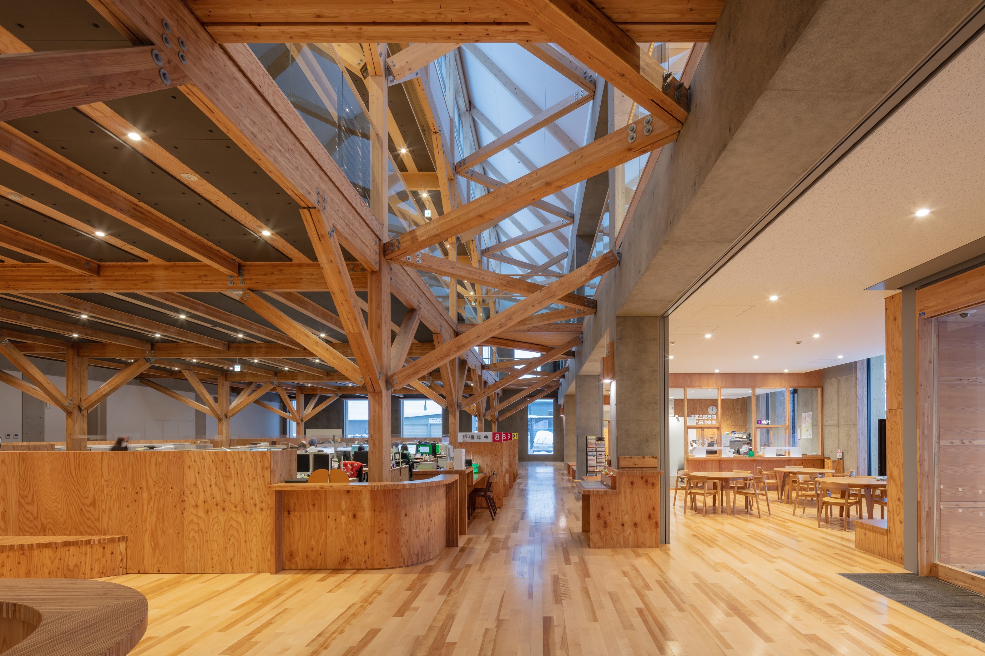 大断面を使わず整列柱で並木のような空間をつくる工夫は、木の持つ構造美と合理性を兼ね備えるものだ。地域材を空間内の広範囲に利用し、地元産業を支援しつつ木造オフィスの質向上につながっている。