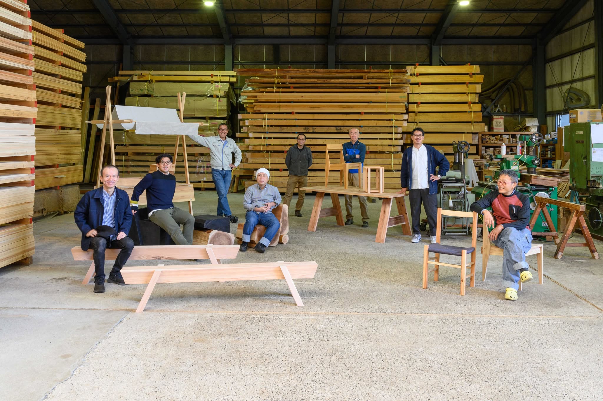川上(林業、山守)、川中(製材業)、川下(デザイナー・建築家・木工家)までの専門家による地域木材資源の循環を伝える活動。活動の中で関わりあう人々と共にワークショップを開催したり、メンバーでデザインした家具の製作や研究発表会も行っている。地域のことを最大限に活かすデザインを心がけている。