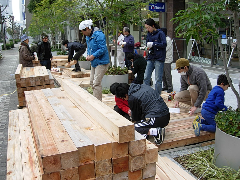 次世代の「森づくり」と「街づくり」を目指して、都市部でマッシブな地域産木材を大量に使い、木材ファンの輪を広げる「人づくり」のプロジェクト。森の恩恵を享受する人びとが主役です。人びとが集う都市を舞台に、森と街の多彩なメンバーが協働し、都市の日常に、ありのままの木を、気楽な形で使っています。