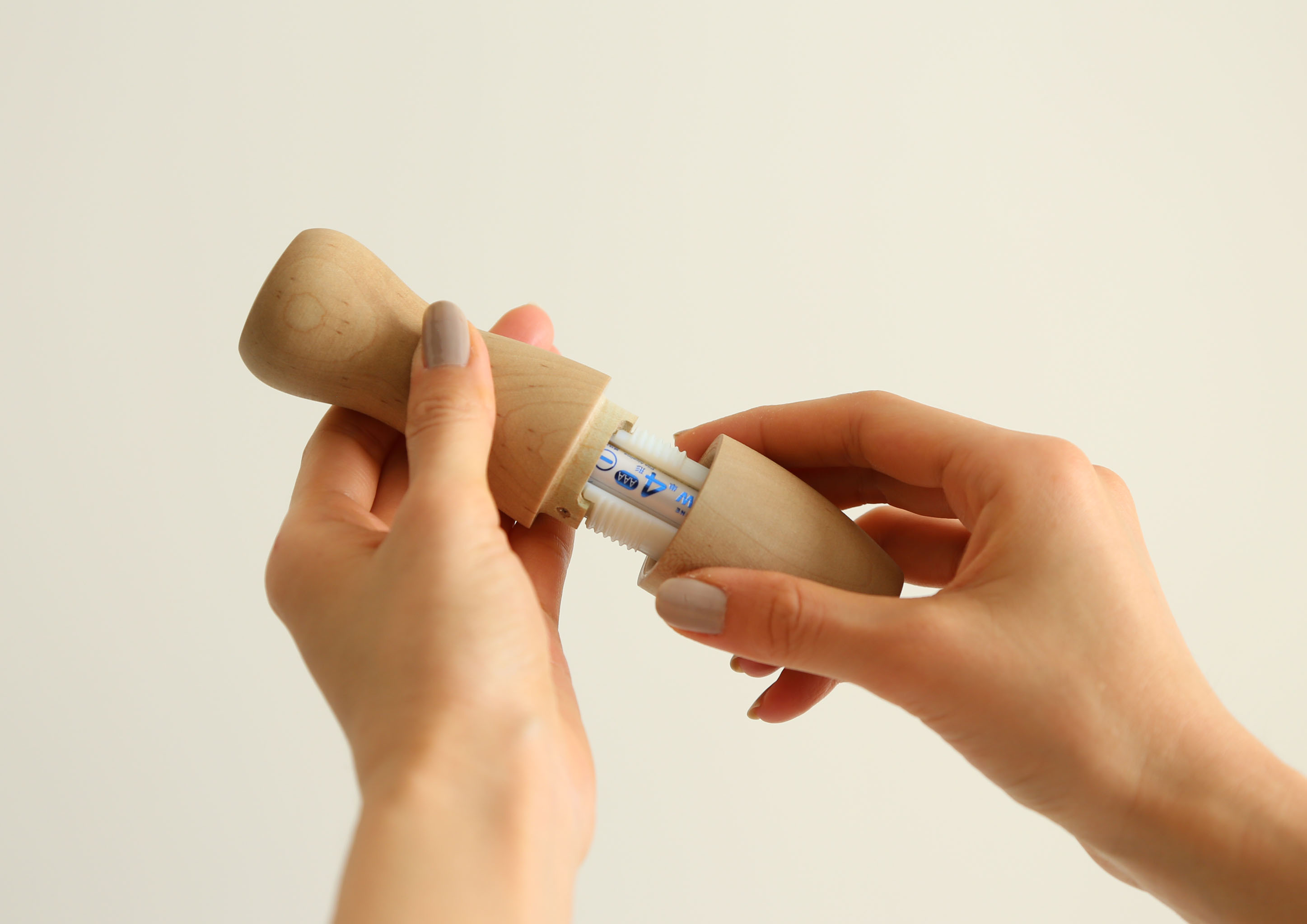 振るだけで世界の様々な民族楽器の音を奏でる楽器玩具。無垢の木でできていて手触りも滑らか。電源ボタンは無く、音を奏でたいと思ったらただ振るだけで、12種類の楽器から100以上の音色が溢れだす。電子機器とは思えないアナログな使用感で、1歳に満たない子供でも親の手助けなしに簡単に楽しめる。