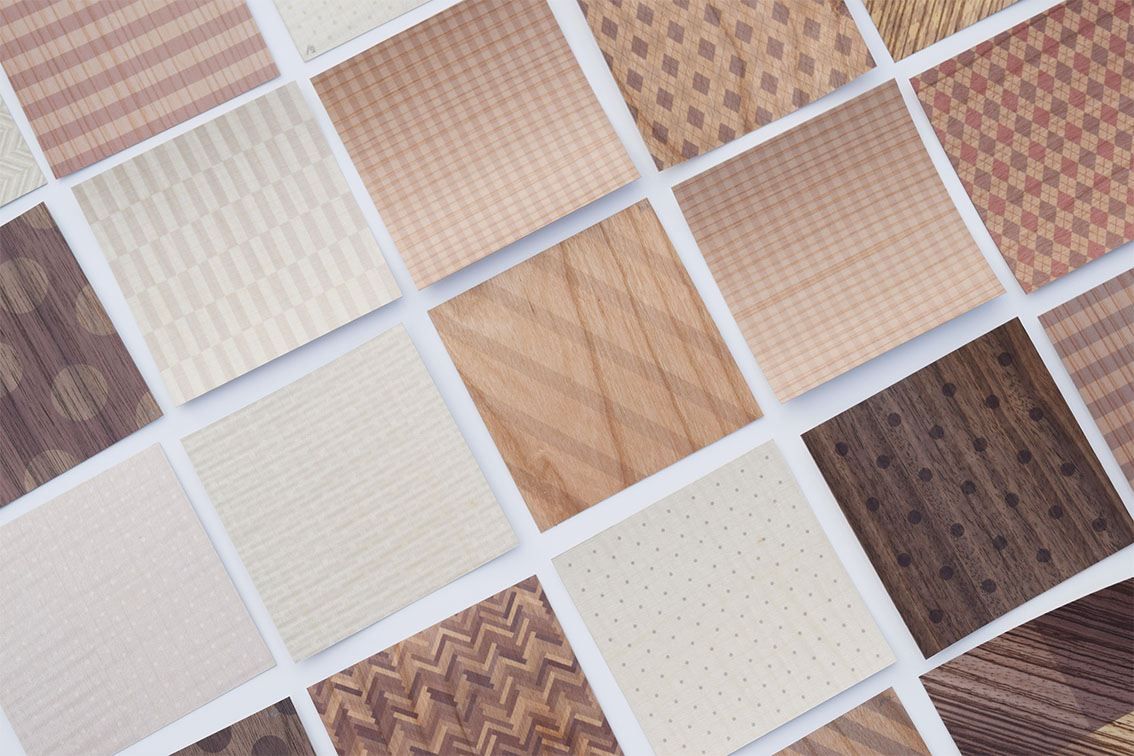 「HOXAN彩」(ツキ板に更なる付加価値をプラスするために開発された彩色加工技術)において、デザイナーとのコラボにより、天然木の元の木目柄や色味を活かし、木の良さを引き立たせるようなオリジナルデザインシリーズの商品を開発。建築内装材としてだけでなく、日用品としての利用も可能。