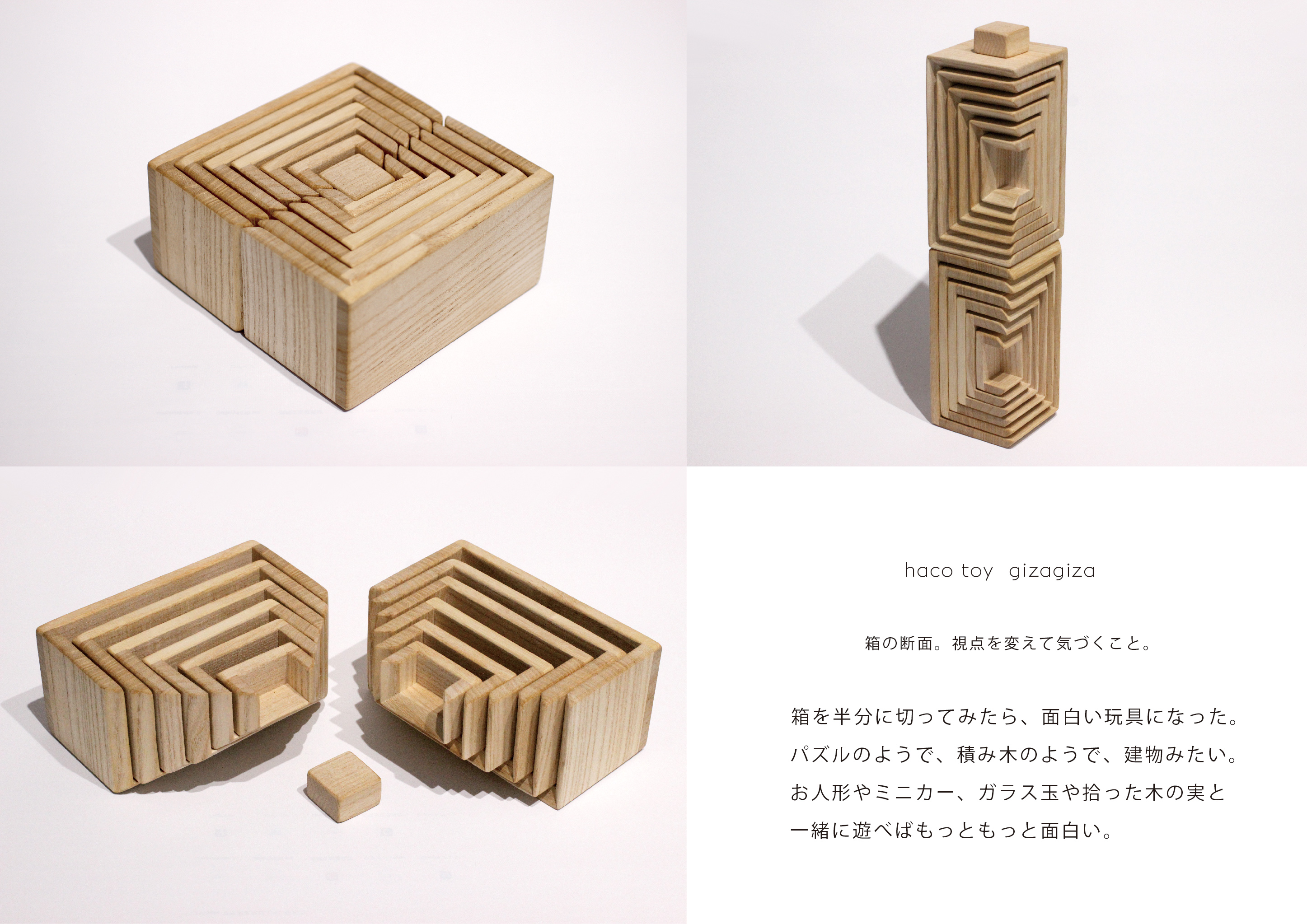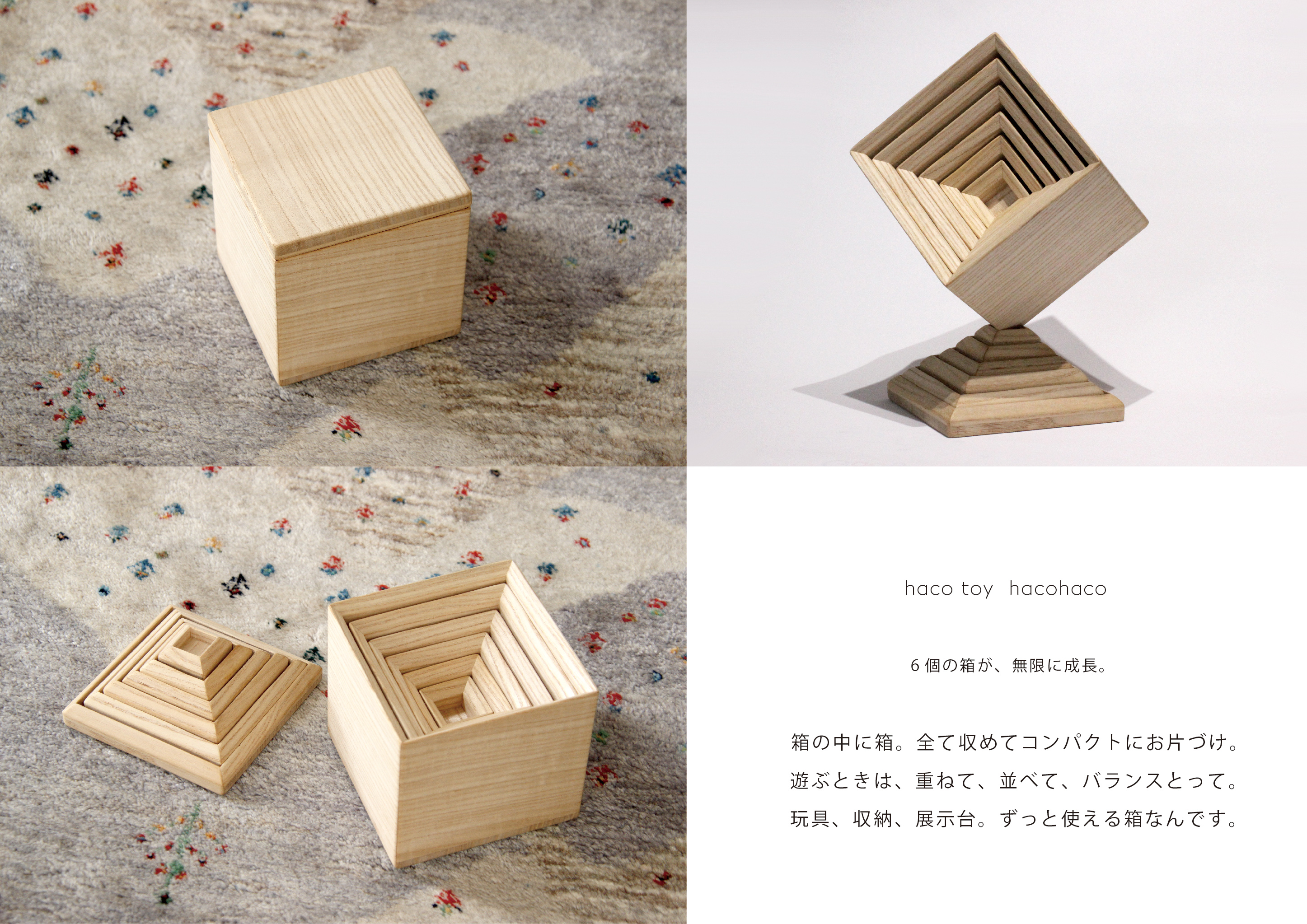 桐箱の製造技法を生かし、また木育の面から単純な木製品の玩具ではなく、積木の様でパズルの様でアートの様で、しかし箱の不思議な永く使える知育玩具としてデザイン・開発。出産祝いや入園祝いなどにも向く。軽い・柔らかい・抗菌・防虫・防カビという国産桐の特性を生かした安心な幼児用玩具。