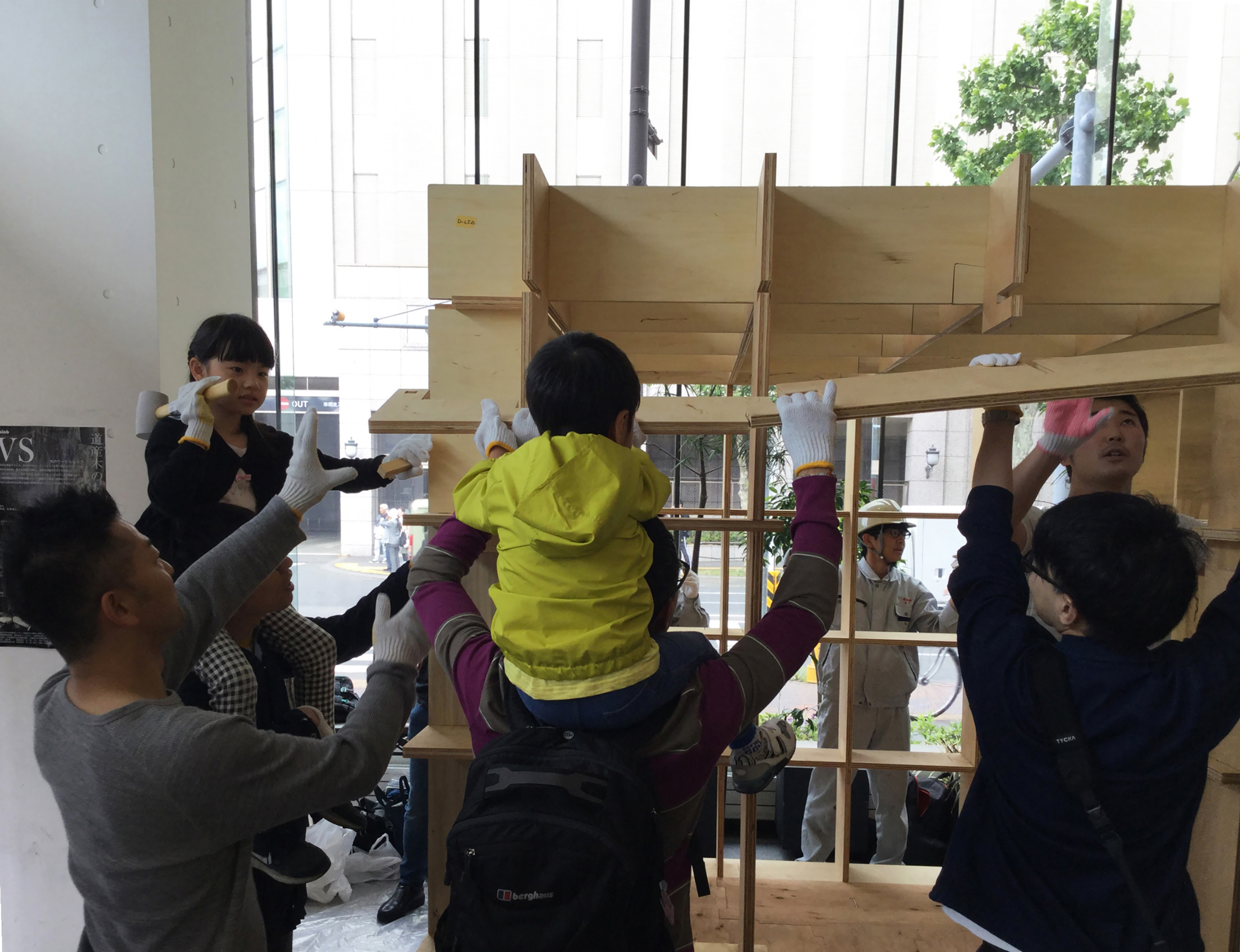 北海道内の多様なステークホルダーが集い、道産木に触れつつ、その活用を考える場をつくった。ワークショップでは簡易建築の組立を実施、そこに至るまでのプロセスにも多彩な人材が参加している。地域材の活用における「関わりのデザイン」を形にした。