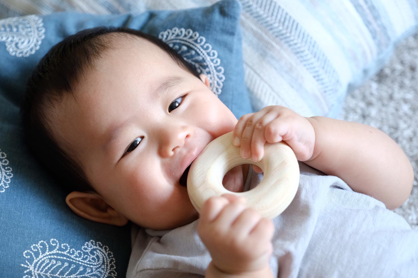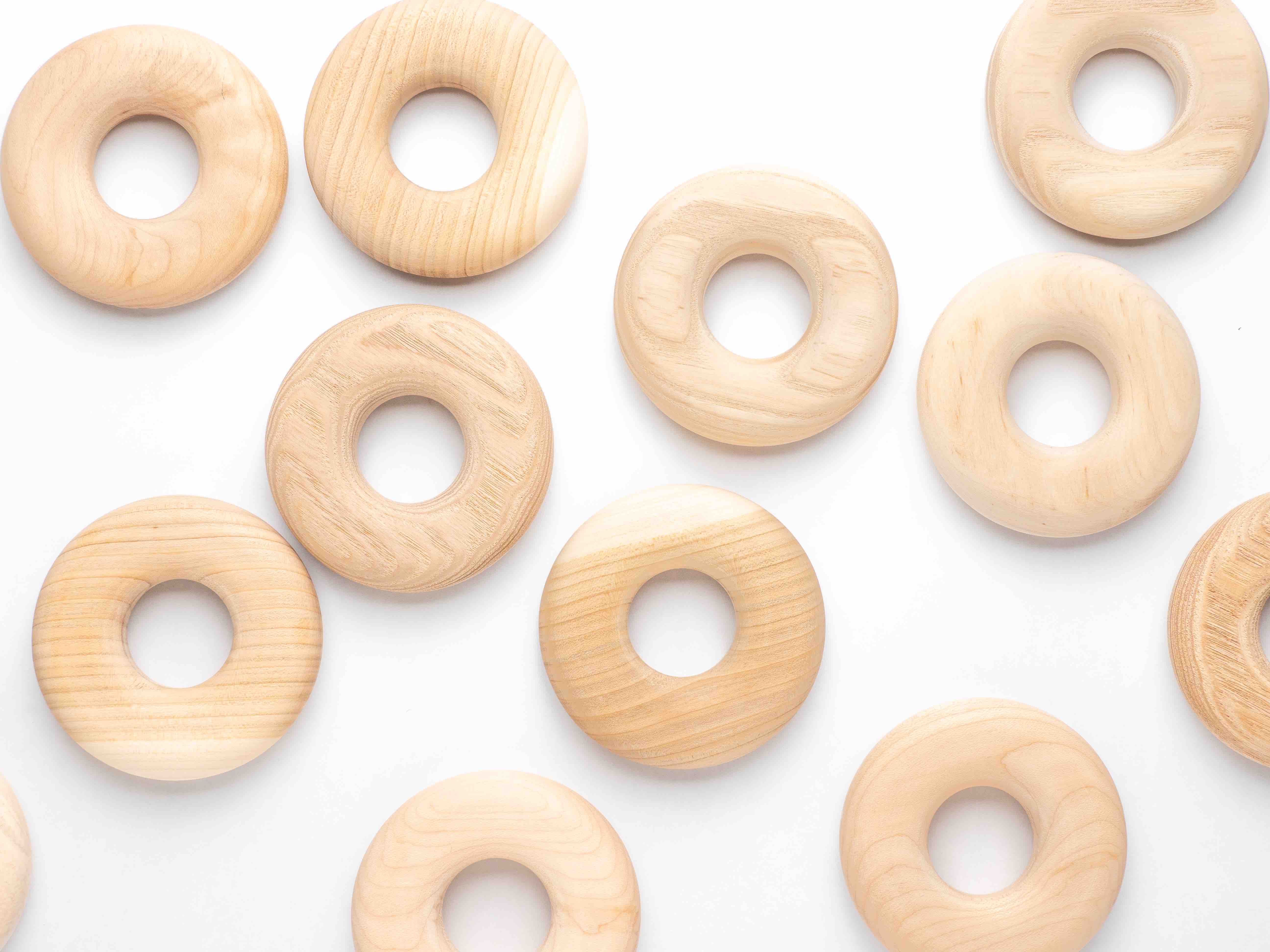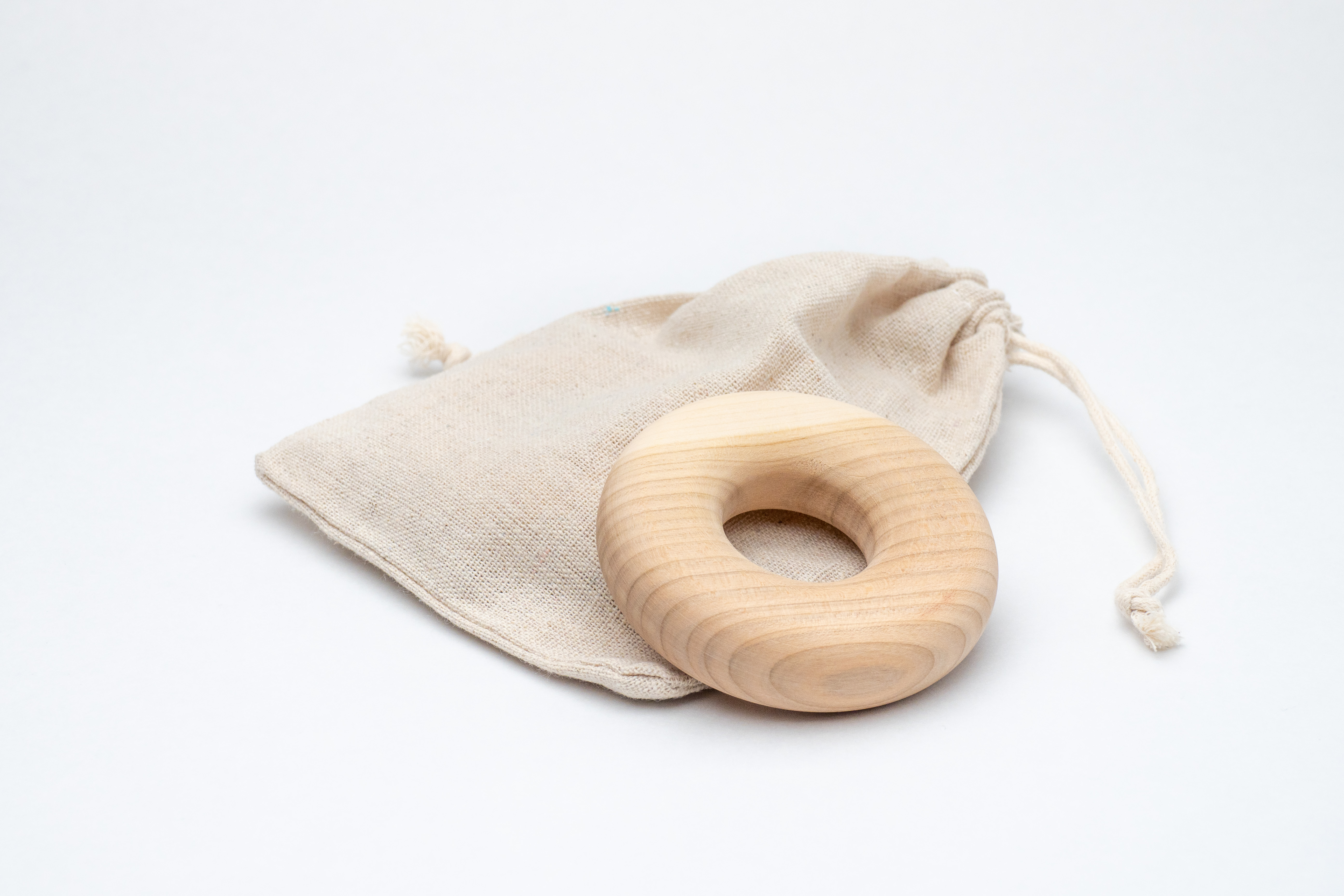 地域ごとの樹種を使い、地域の手でつくられるドーナツ型の木製玩具で、同梱の紙やすりで大人が自分でメンテナンスをしてあげられるため、親子ともども地域の木に触れる機会を増やしてくれる。握ったり舐めたり噛んだりといった乳児期に必要な行為を誘発し、かつ安全である。