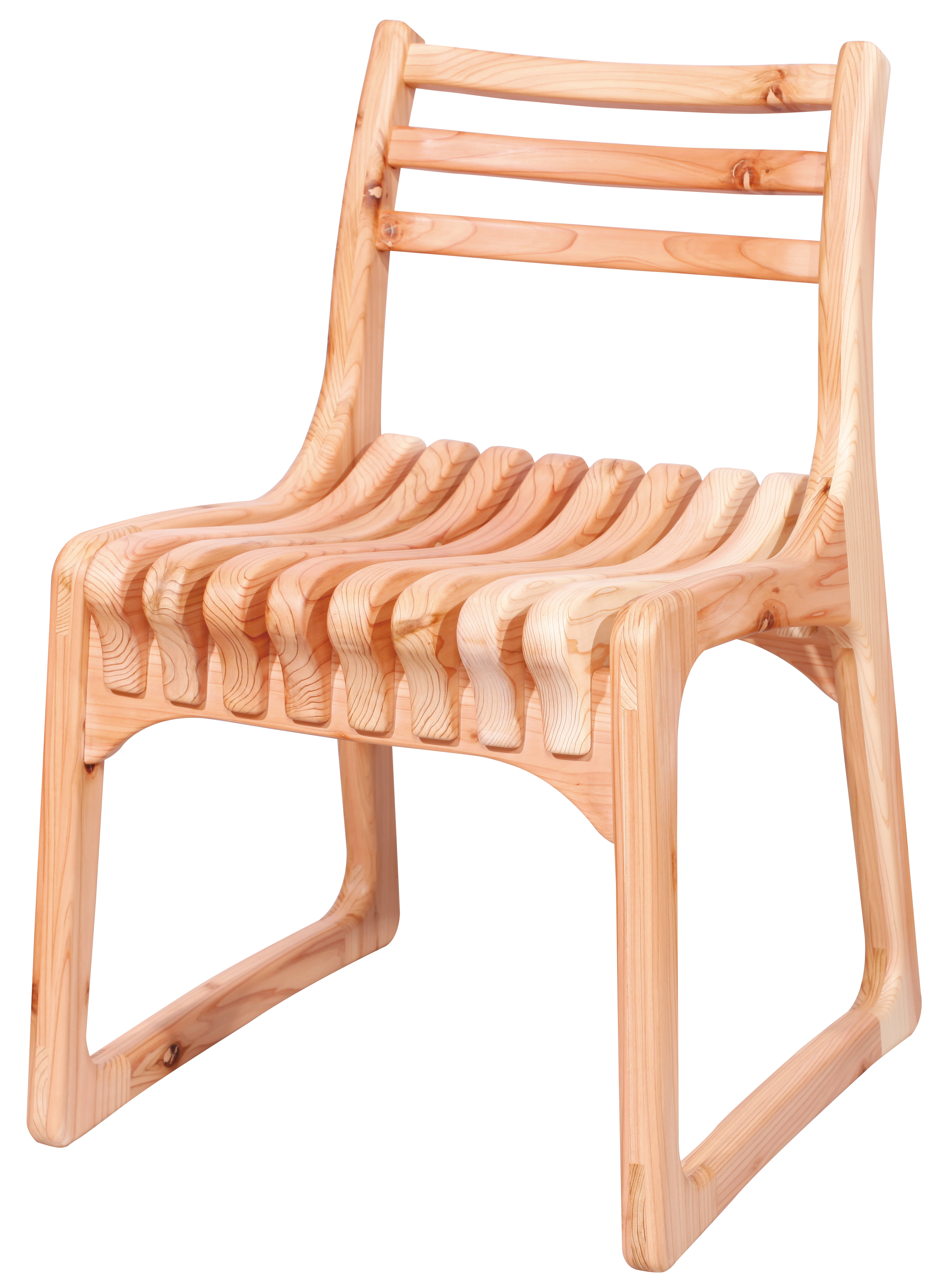 その柔らかさゆえ、家具の素材としては敬遠されてきた杉をデザインの工夫で課題をクリアした。森づくり活動から生まれた材を使っており、さまざまな啓発活動との組み合わせで完成する家具と言える。