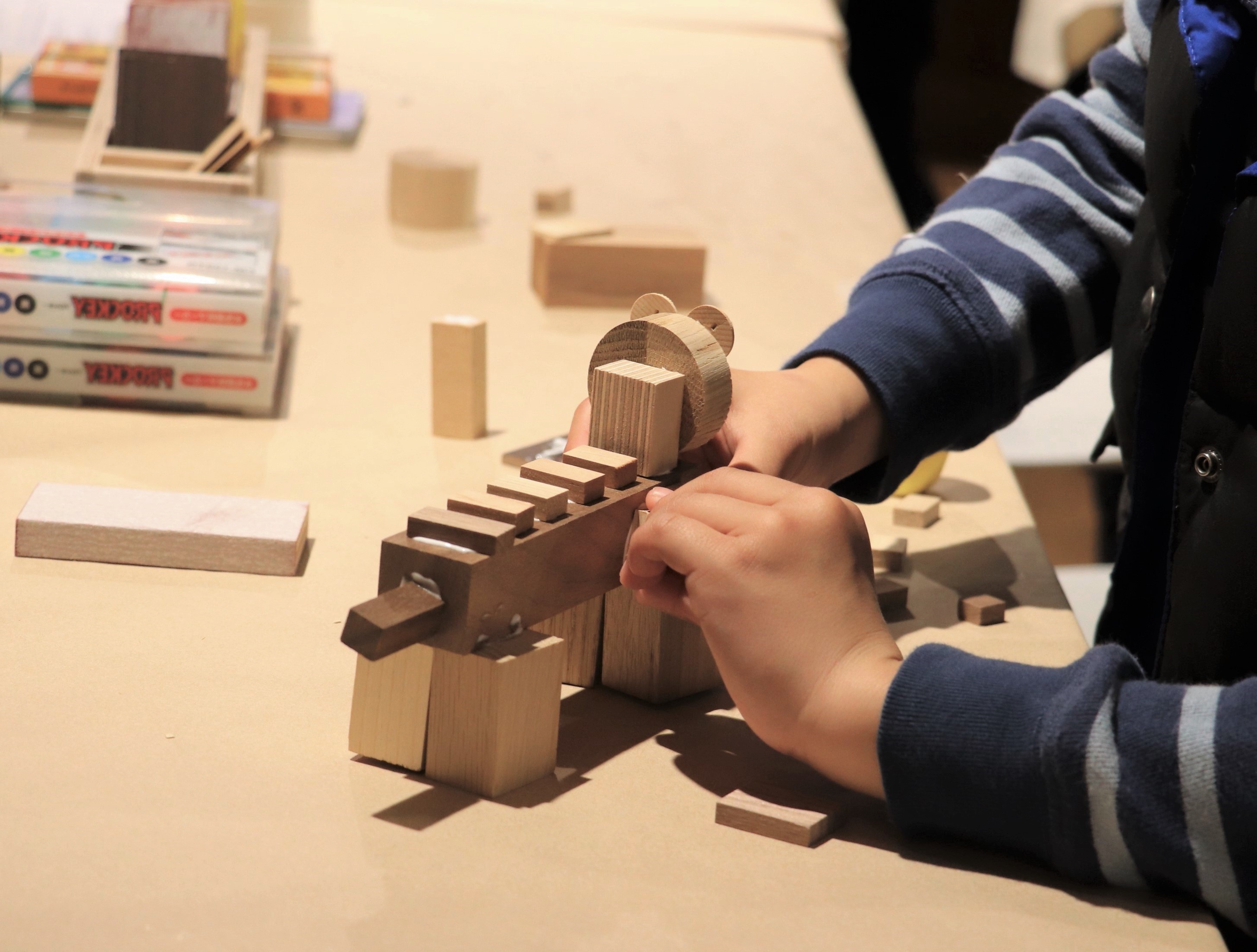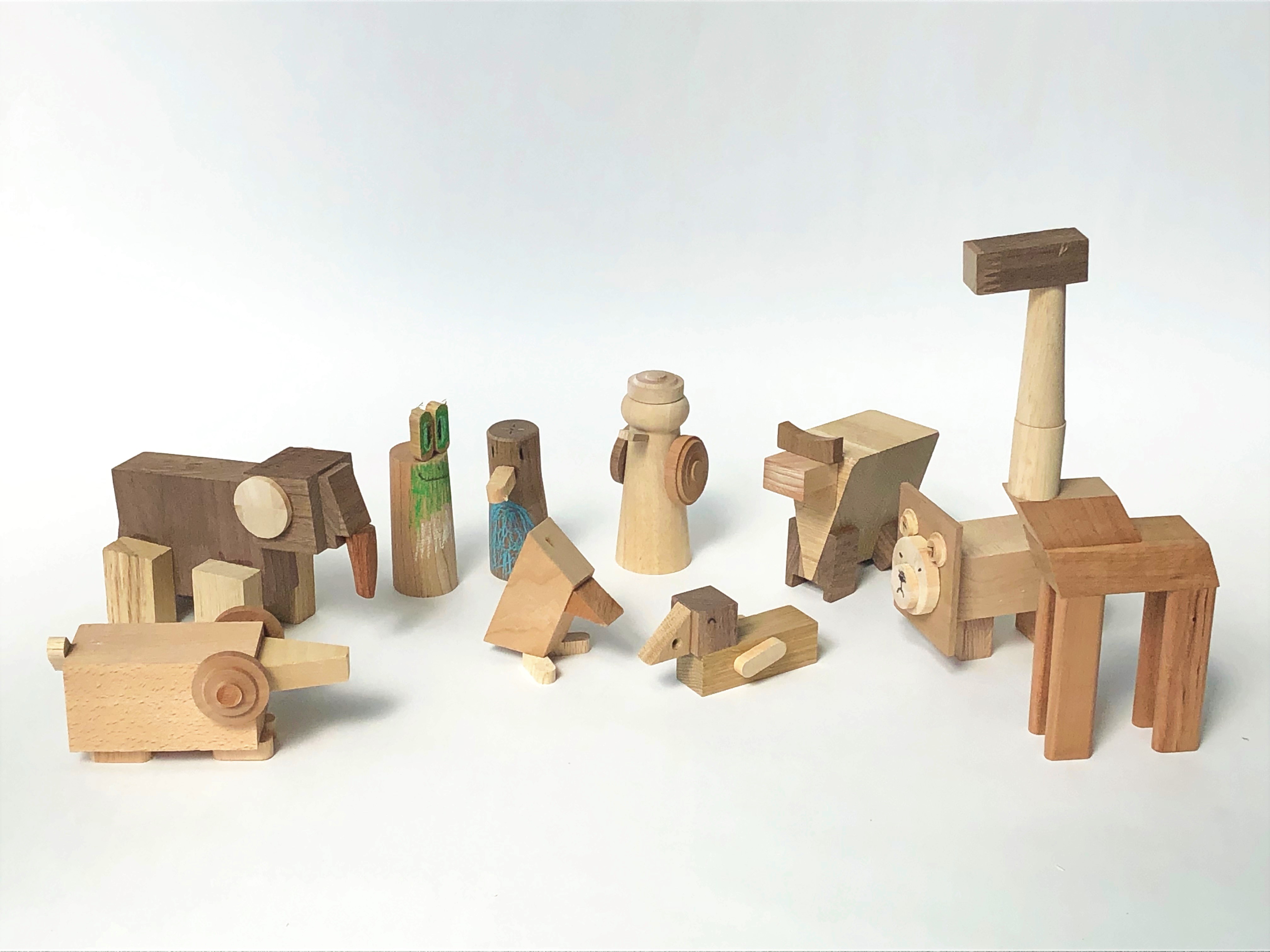 家具製造から生まれるいろいろな形の端材を使って動物をつくるというシンプルなワークショップだが、予定調和ではない木の組み合わせはクリエイティブな作業である。木を触りながら形を考えていく過程で、素材の色・手触りに改めて気づくだろう。