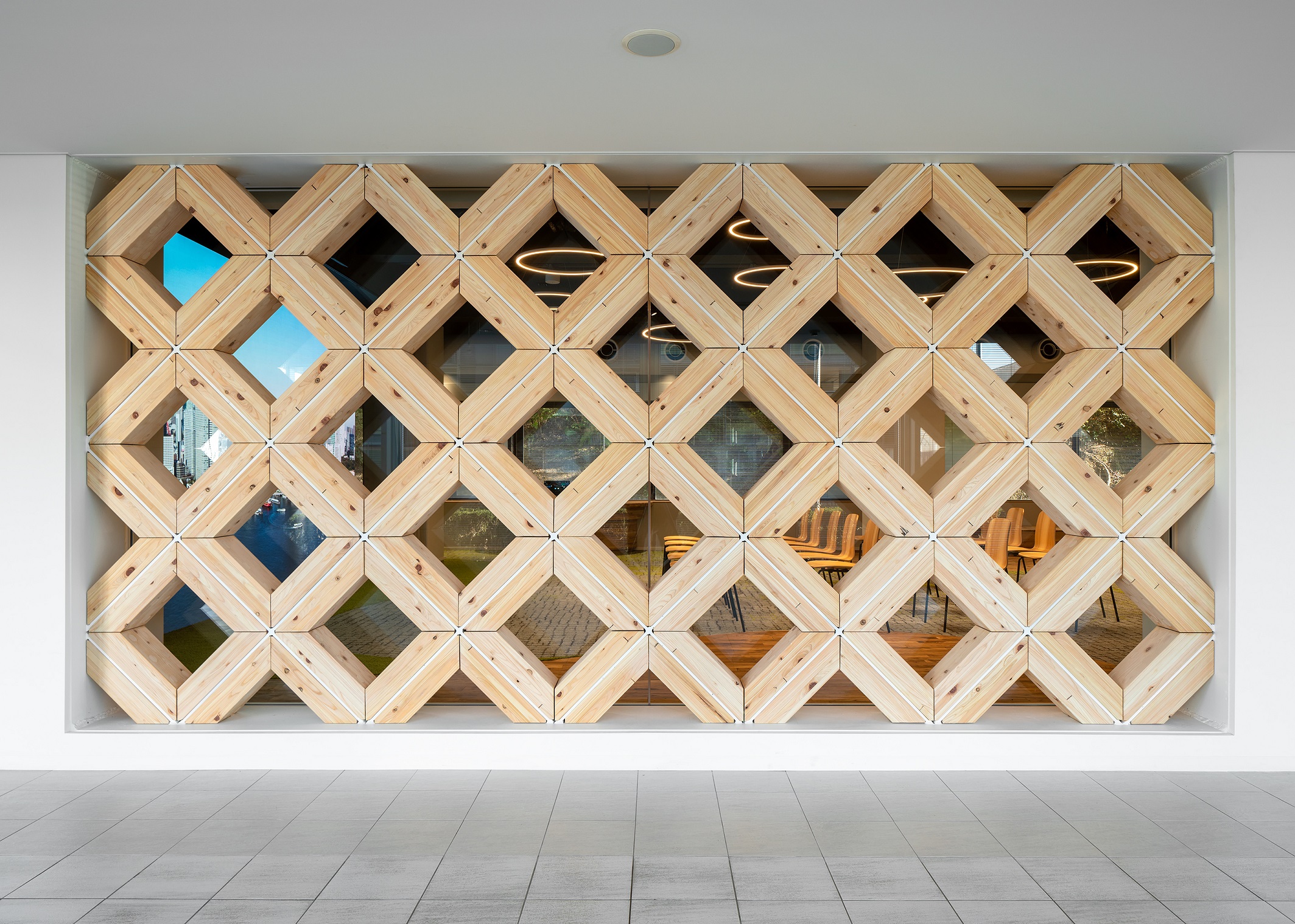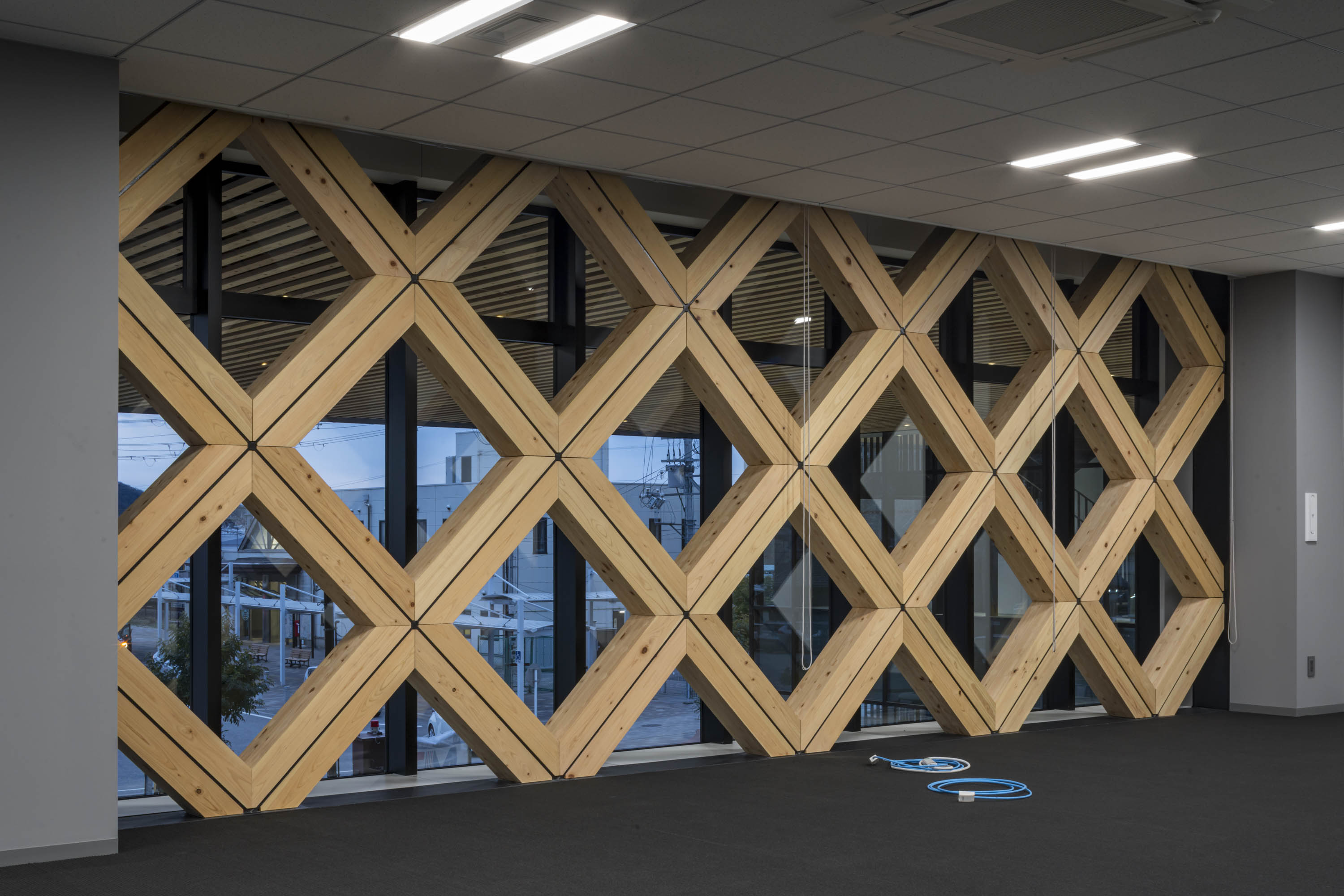 耐震技術における木材利用の提案が増えていることは喜ばしい。集成材やCLTなどの木材格子の組み合わせ次第でデザインの自由度が高い。耐震性能の向上も期待でき、カーボンニュートラルにも貢献できる作品。