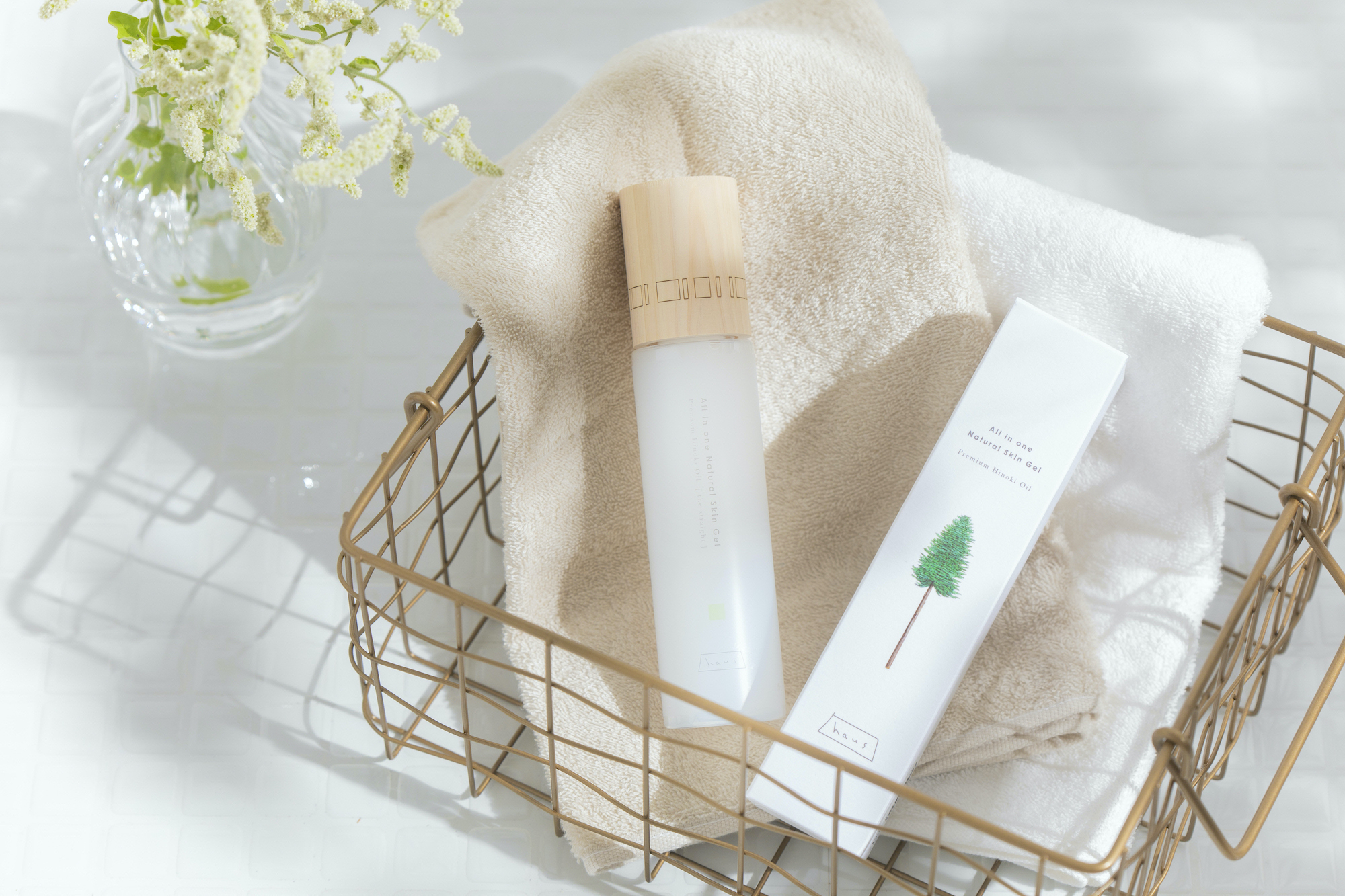 法隆寺等の木造建築や歴史文化を支えてきた日本を代表する樹種「桧」。その油分にはアロマ効果や鎮静、抗菌、抗炎症、肌の柔軟化作用が認められる。コロナによる生活・仕事環境の劇的変化で人々が抱える肌トラブルやストレスの改善、他者と環境への思いやりを目的に自然由来成分と癒しの香りを融合させたスキンケア製品。