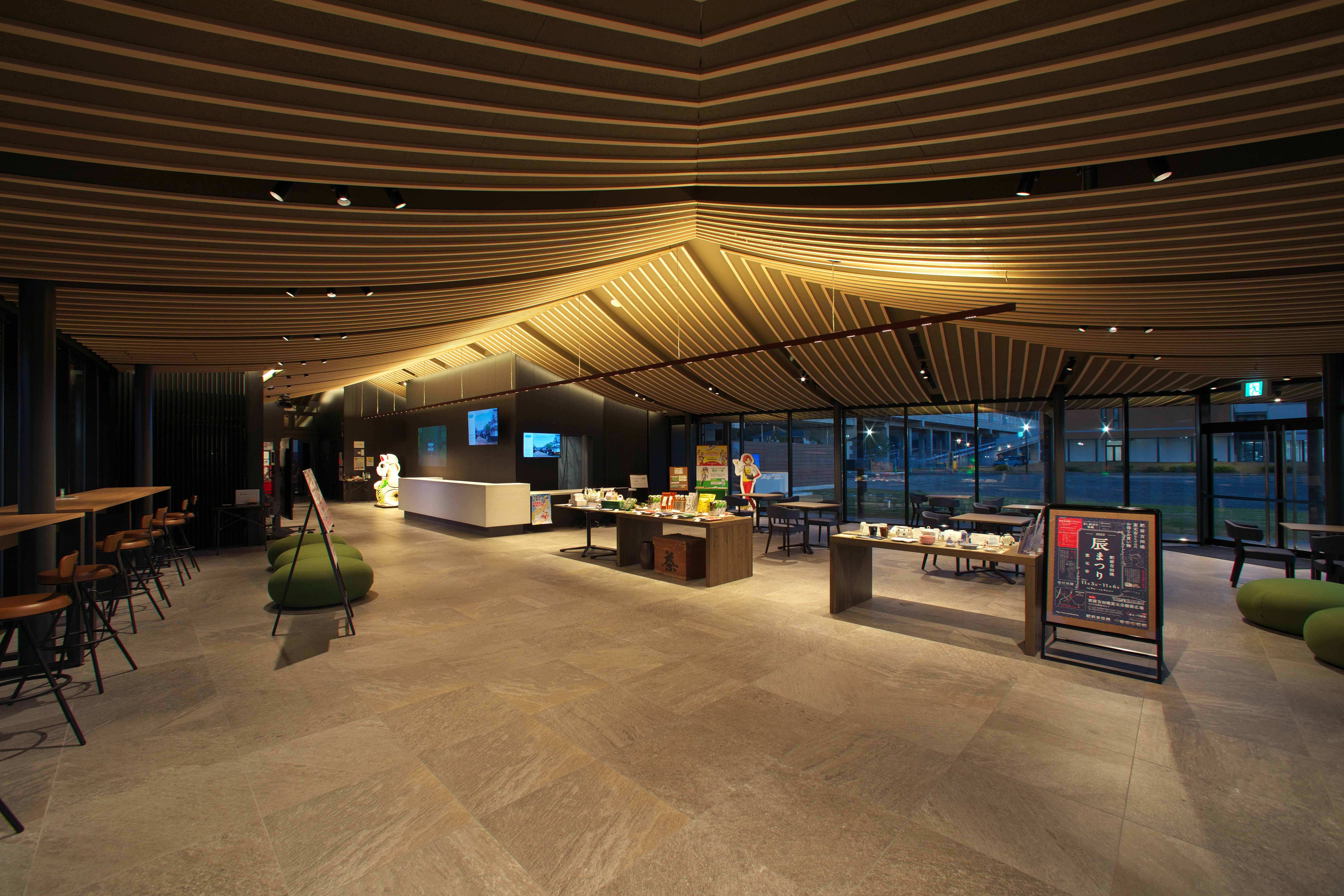 嬉野温泉駅の開業に合わせて嬉野温泉駅西口に広がる道の駅内にオープンした情報発信施設。駅を利用する旅客や市民も楽しめるイベントを行っている。国内外の旅客がまちの第一印象を決めるこの施設は、嬉野の温泉や日本茶から想起される伝統的なイメージと新幹線の先進性が両立されたおおらかなヒノキ天井を特徴としている。