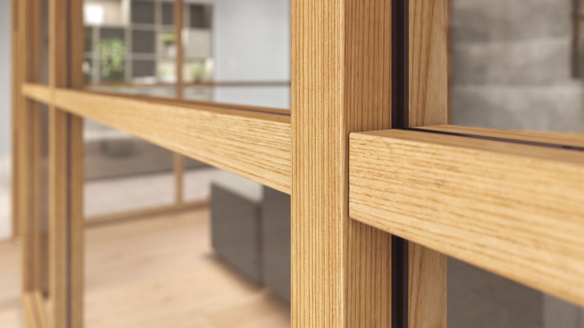 Feels(フィールス)は、居心地の良い空間を実現し、内装木質化の導入ハードルを解消する商品です。不燃対応が必要な内装分野において、突板で木質化した不燃のパーティションシリーズとなっており、壁面、ガラス間仕切、ドアに至るまで、個室を創る上で必要なアイテムが統一したディティールで計画できます。