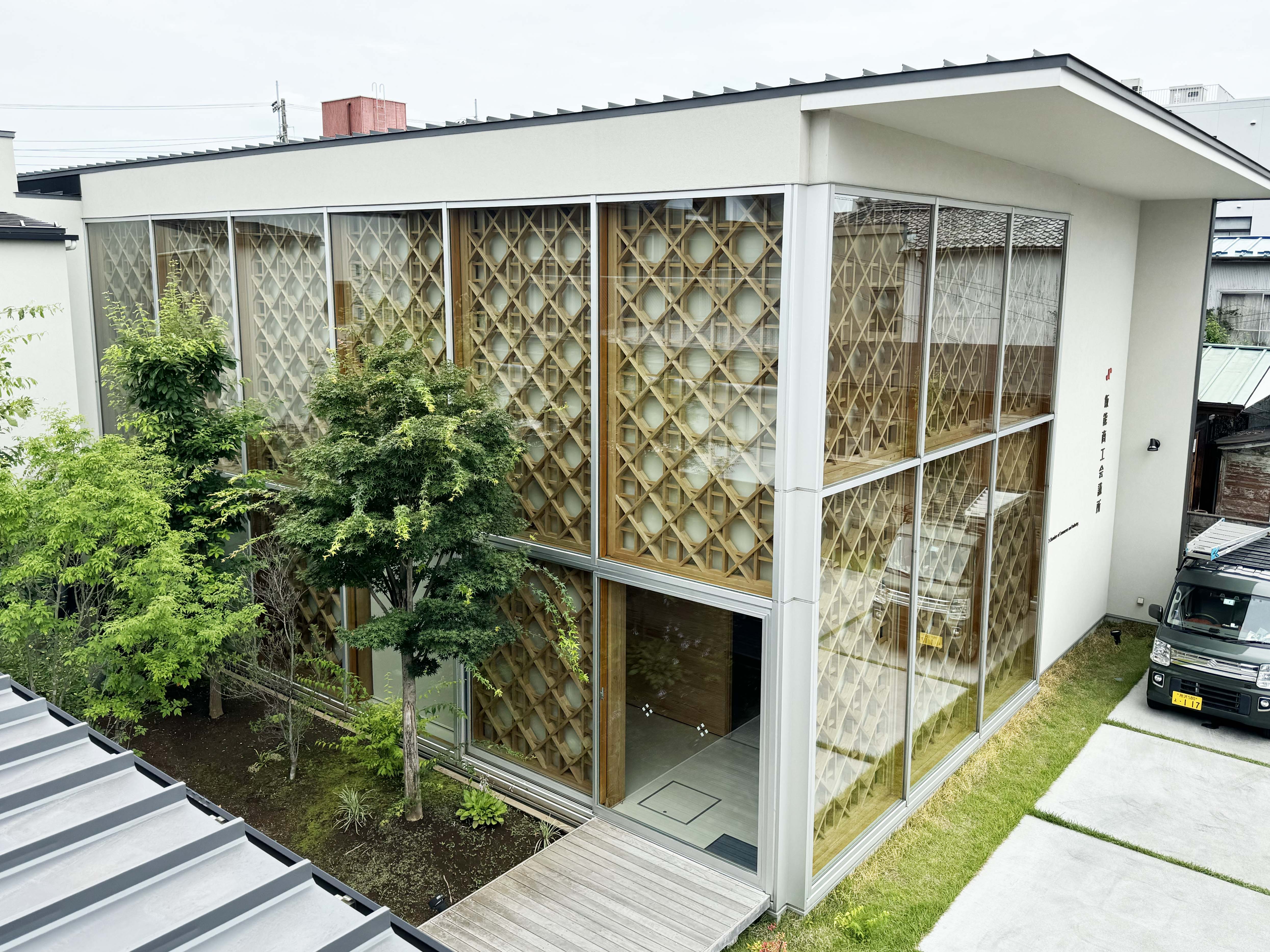 通風、採光の機能性を備え、意匠にも優れた組子の耐力壁で、日本の伝統的な木工技術を現代のライフスタイルに活かす提案である。建具職人の技術の伝承にもつながる点も重要である。