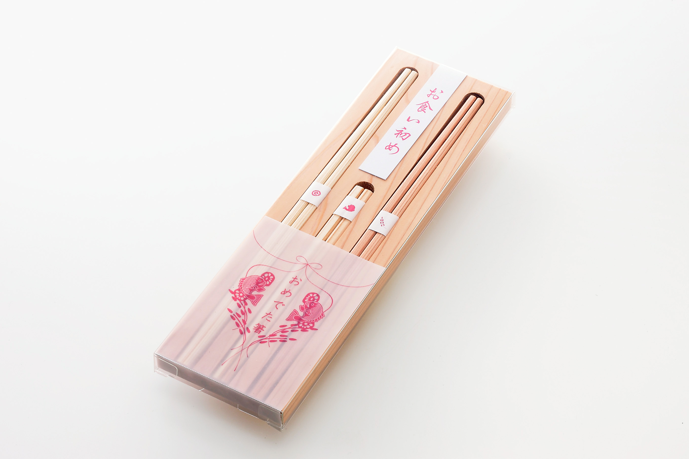 新生児の生後100日に行われる「お食い初め」の儀式用割り箸3膳セットです。両親用の赤、白、そして新生児用には紅白の割り箸を用いることで、新しい家族の象徴を表現しました。人が初めてお箸に出会う、一度きりの特別な日に、特別なお箸を。