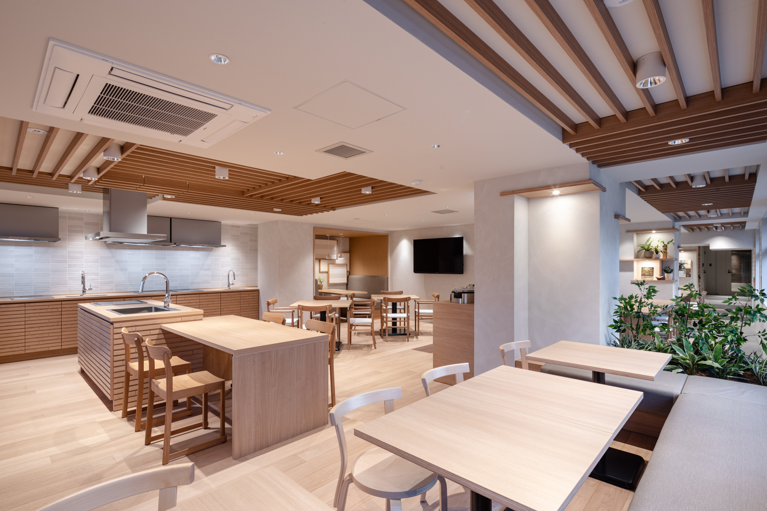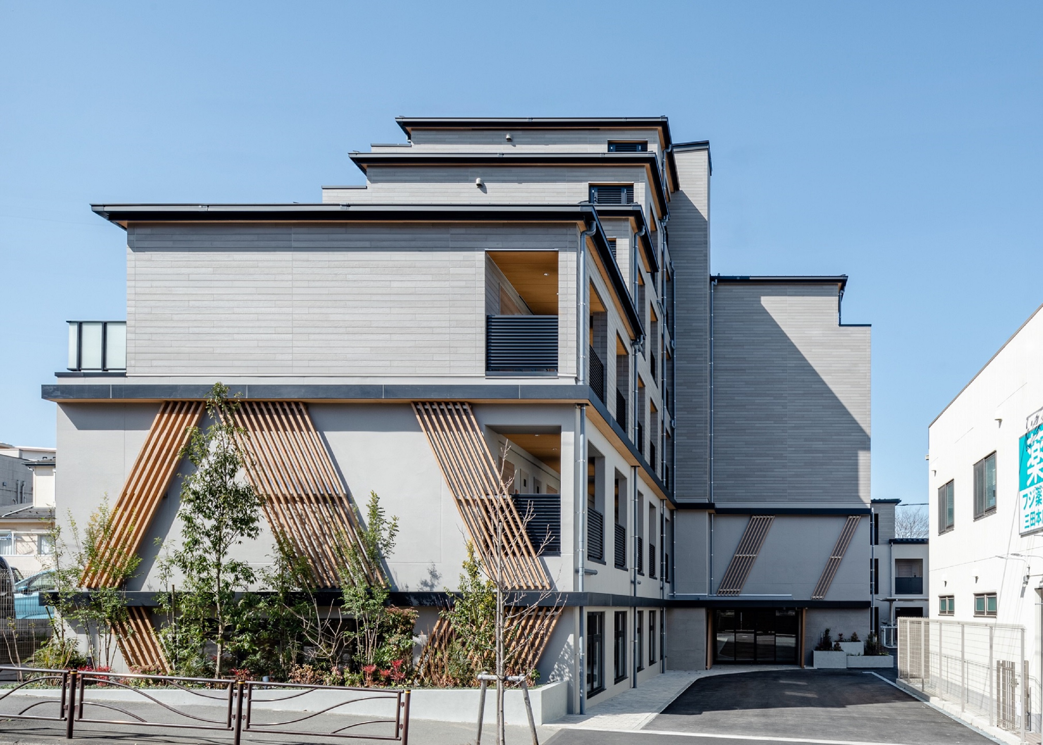 居住者の快適性と環境配慮の両立を実現した木造ハイブリッド構造の6階建て学生マンション。天然木や木調仕上げのリラックスできるデザインに加えスキップフロアなどの空間デザインが学生同士のコミュニケーションを促進する他、施工会社独自の木造マンション技術を採用し遮音性等の居住性を高めた高付加価値木造建築。