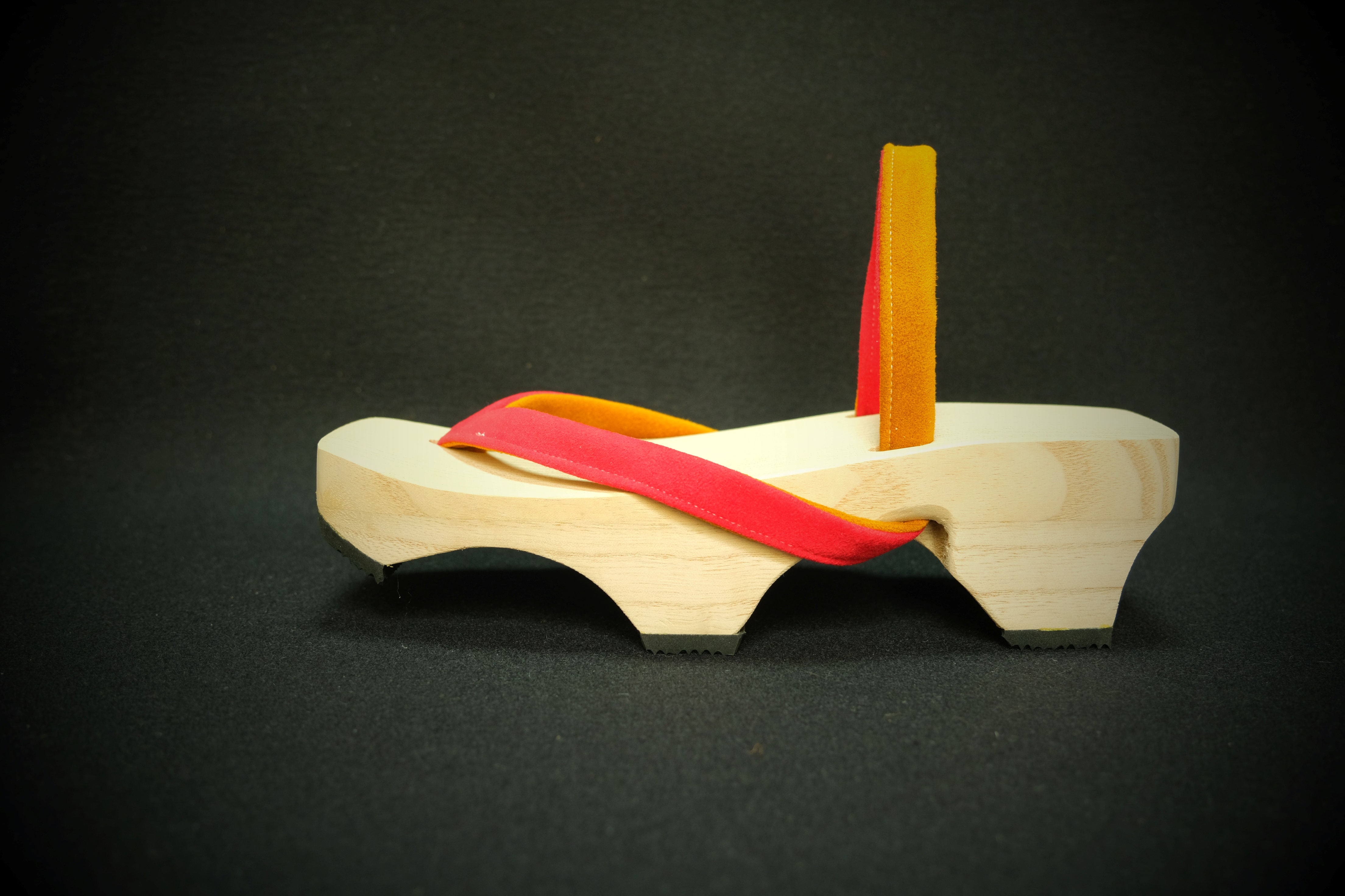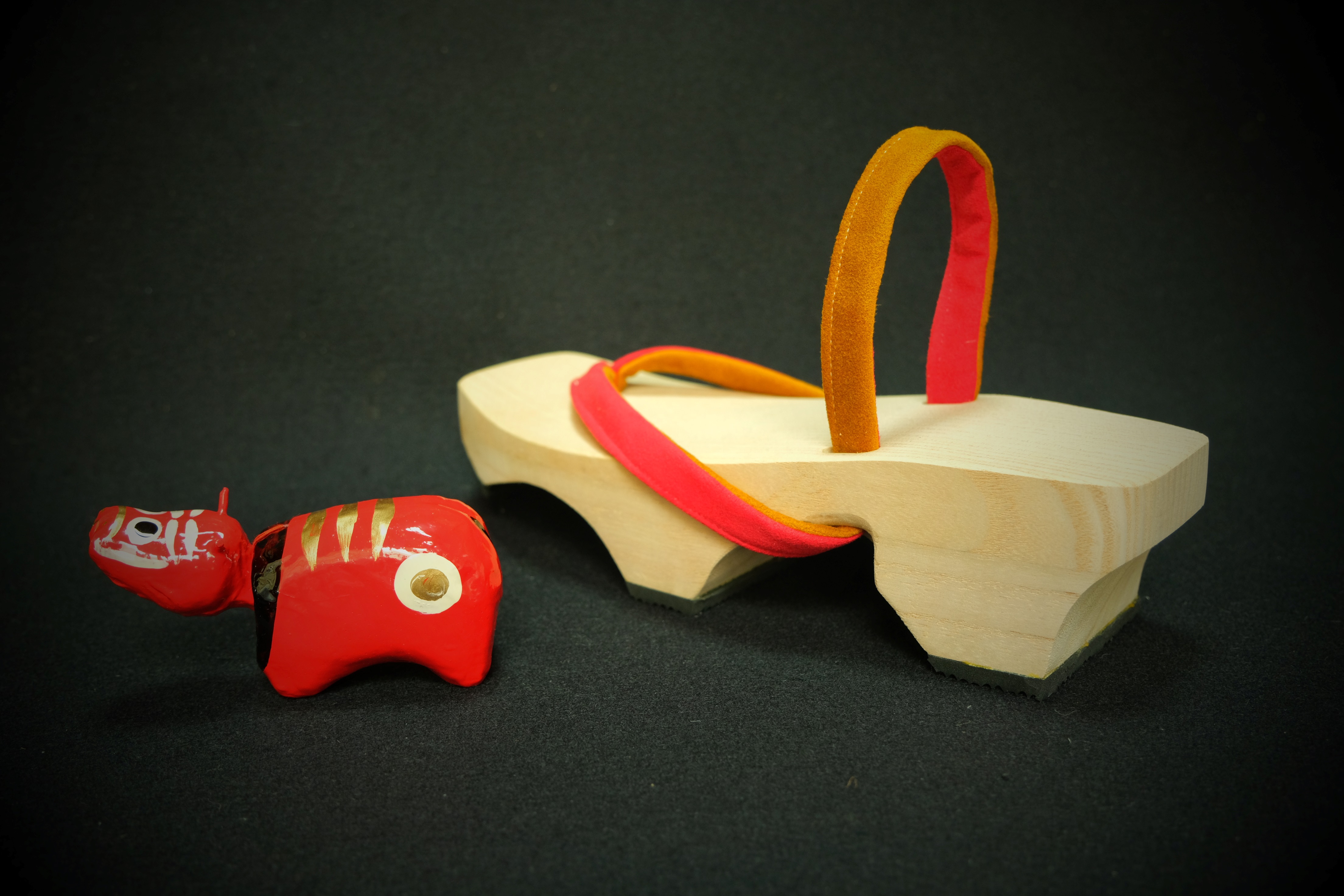 会津地方の郷土玩具である赤べこをデザインモチーフにして会津桐の優しい触感やイメージを重ねてデザインで表現しました。この組み合わせによりメイドイン会津を印象づけ、履きやすく工夫した桐下駄で楽しく履いていただき、新たな購買層を開拓します。通常の下駄は先端が地面に当たると削れてしまいますが工夫により耐久性を上げています。