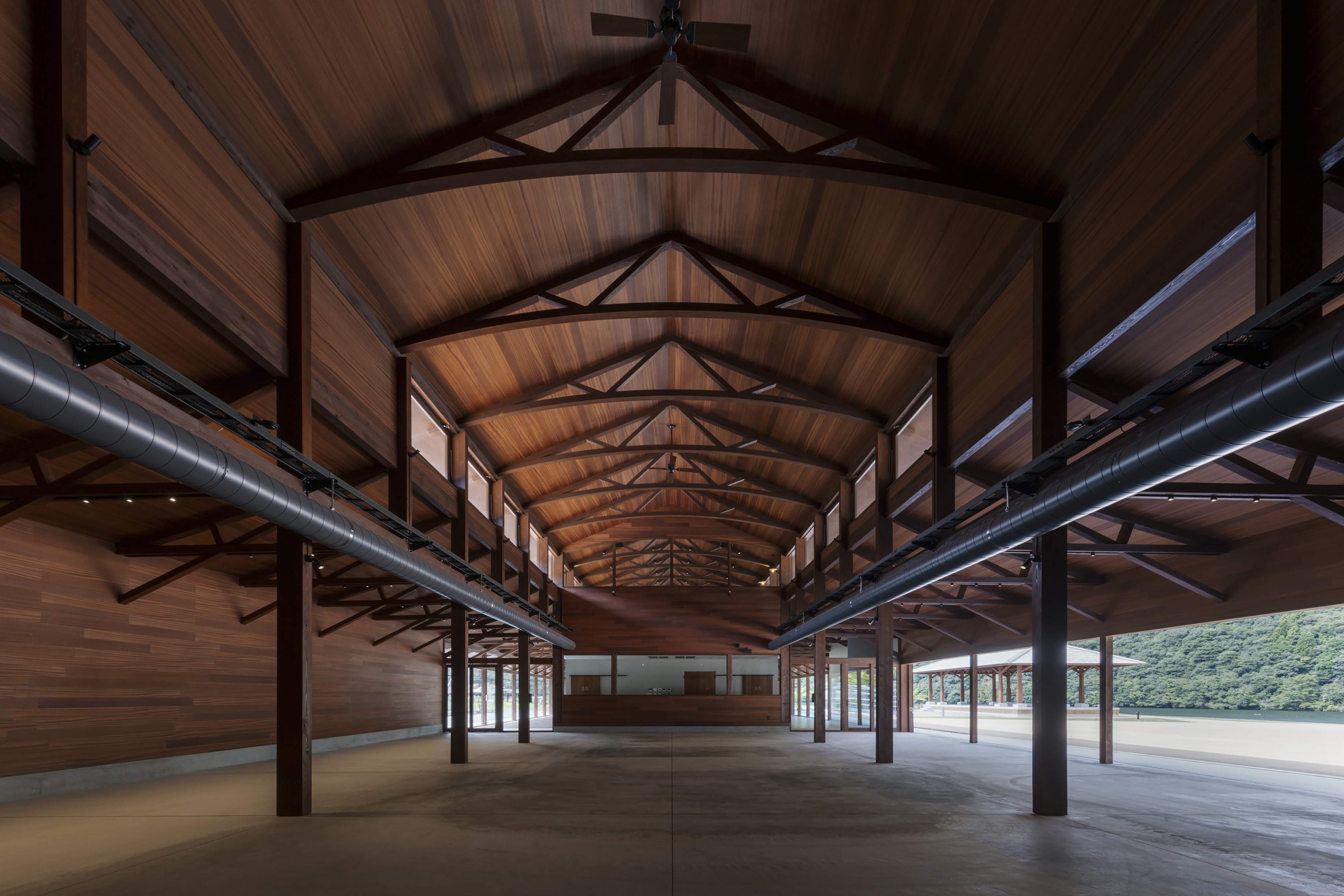 美郷町に位置するカヌー艇庫は、2030年島根国体のカヌー競技場としての役割を担い、バリ島マス村との長年の友好関係を背景に、バリ様式を取り入れた独自の建築デザインが採用された施設。平時は地元中・高校生のカヌー部の部室として利用されるほか、観光拠点、スポーツ振興、国際文化交流の場としても活用ができ、地域活性化も期待される。