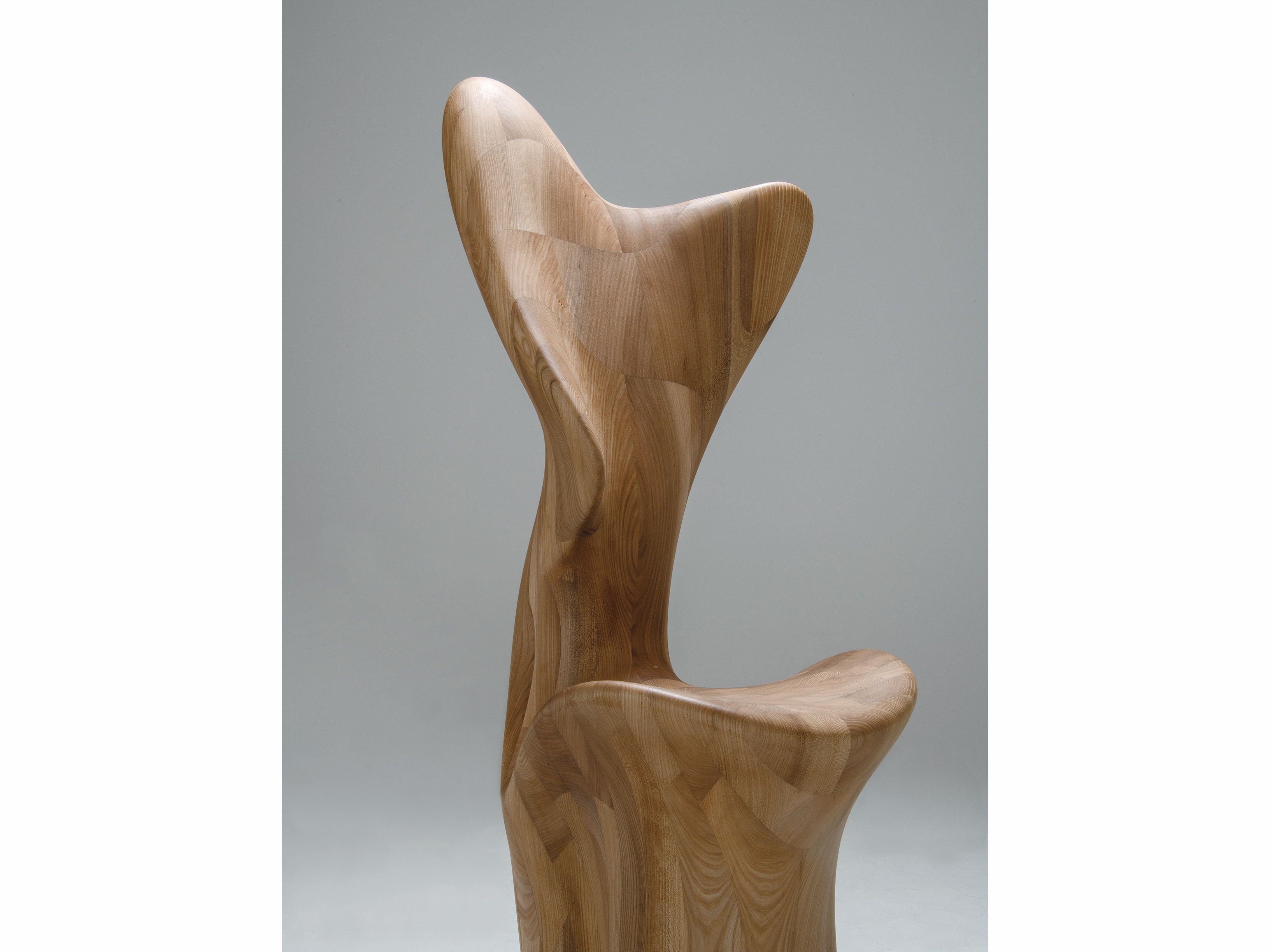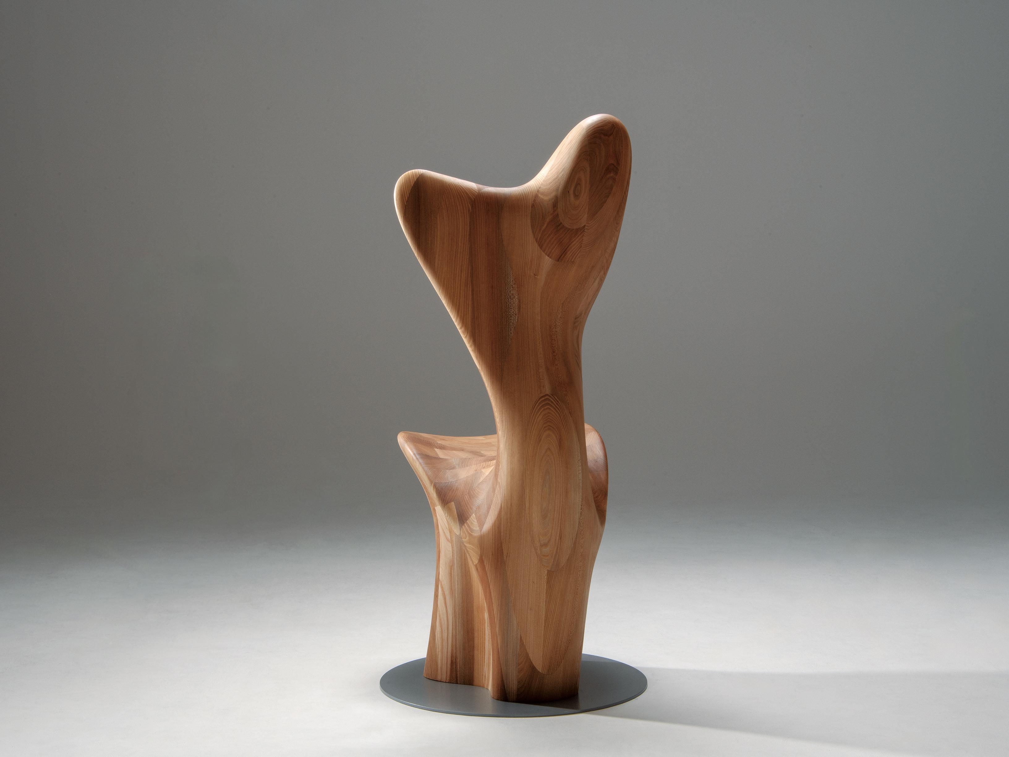「国際家具デザインコンペティション旭川2024」最高賞受賞作品を製品化した。見た人をひと目で惹きつけるこの家具は、木製家具と人々との間により親密な関係を築く手段としてデザインされた“抱くように座る椅子”である。極めて有機的な造形が特徴で、座る人をほかのどの椅子にもない心地よさで包み込む。