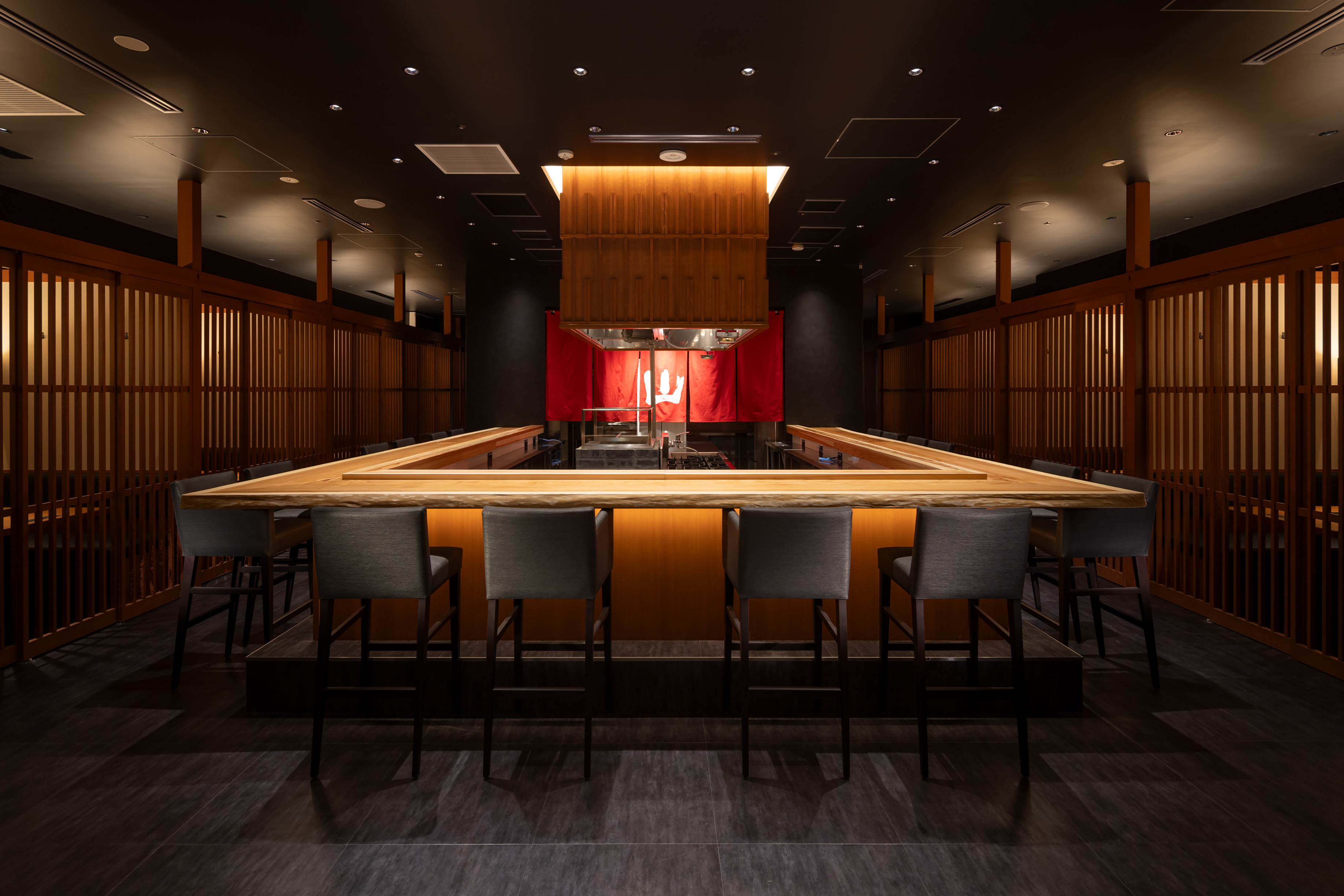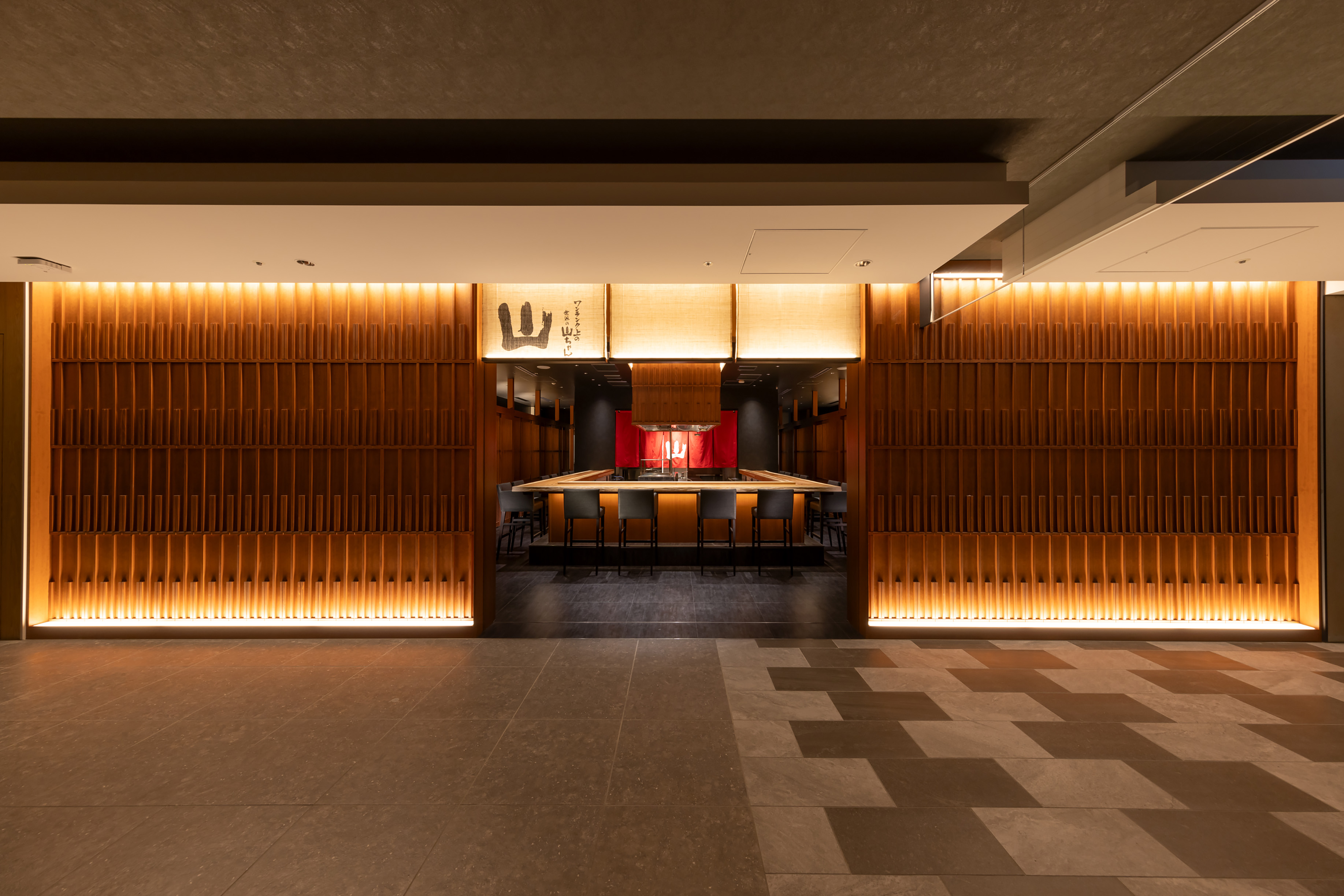 大阪駅周辺再開発事業の一つであるKITTE大阪に開業した名古屋名物の世界の山ちゃんのワンランク上の店舗。店名の「山」の漢字をモチーフとした山格子とシンメトリーの空間の中央に近畿圏産材である吉野杉のカウンターを設け、柔らかな質感がユーザーとスタッフの心理的距離を近づけ、居心地の良さを創り出した。
