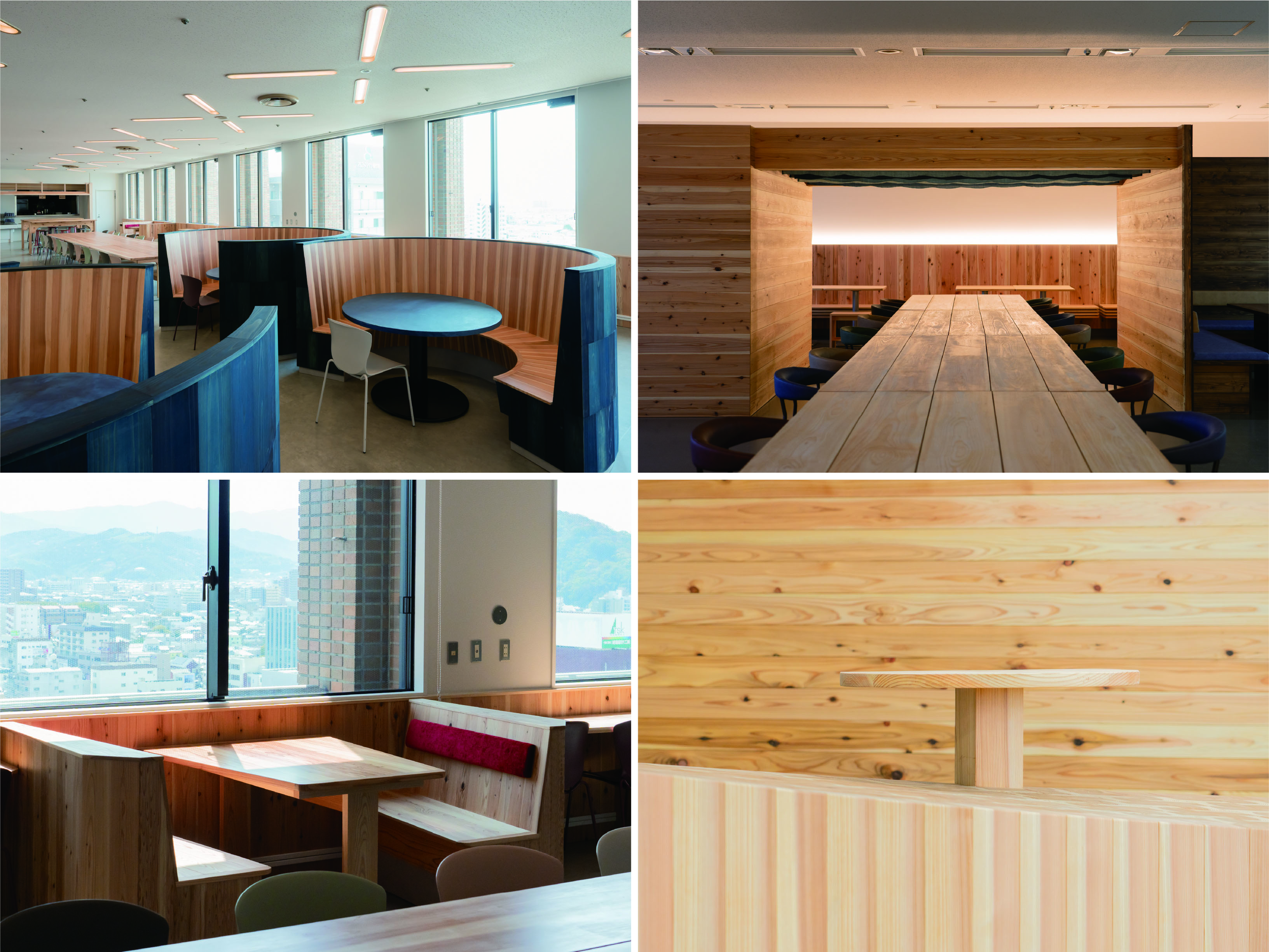 「開かれた県庁の実現」と「職員の働く意欲の向上」を目指し、県庁11階の食堂と展望者ロビーを県事業で木質化によるリノベーションを実施。各施設を「CO-CAGEキッチン」「CO-CAGE」と愛称を付け、徳島すぎ等の県産材を使用した温かみのある空間を創出し、県産材製品の情報発信拠点としても位置づけている。