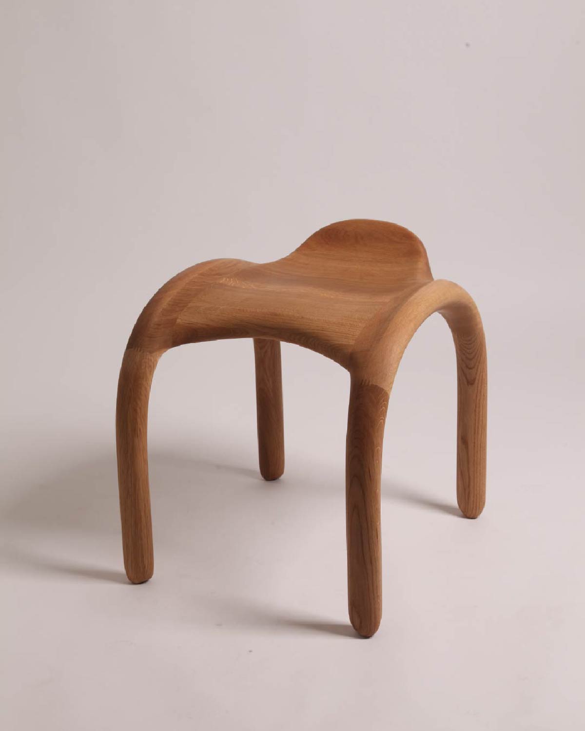 アーチ状の脚の構造をメインにしたスツールチェアー。曲面で構成されたやさしい形状は空間をあたたかく、和みのある、空間づくりに貢献する。美術館、図書館、ホテルなどの施設、またご家庭のダイニングチェア、エントランスチェアとしても利用できる。
