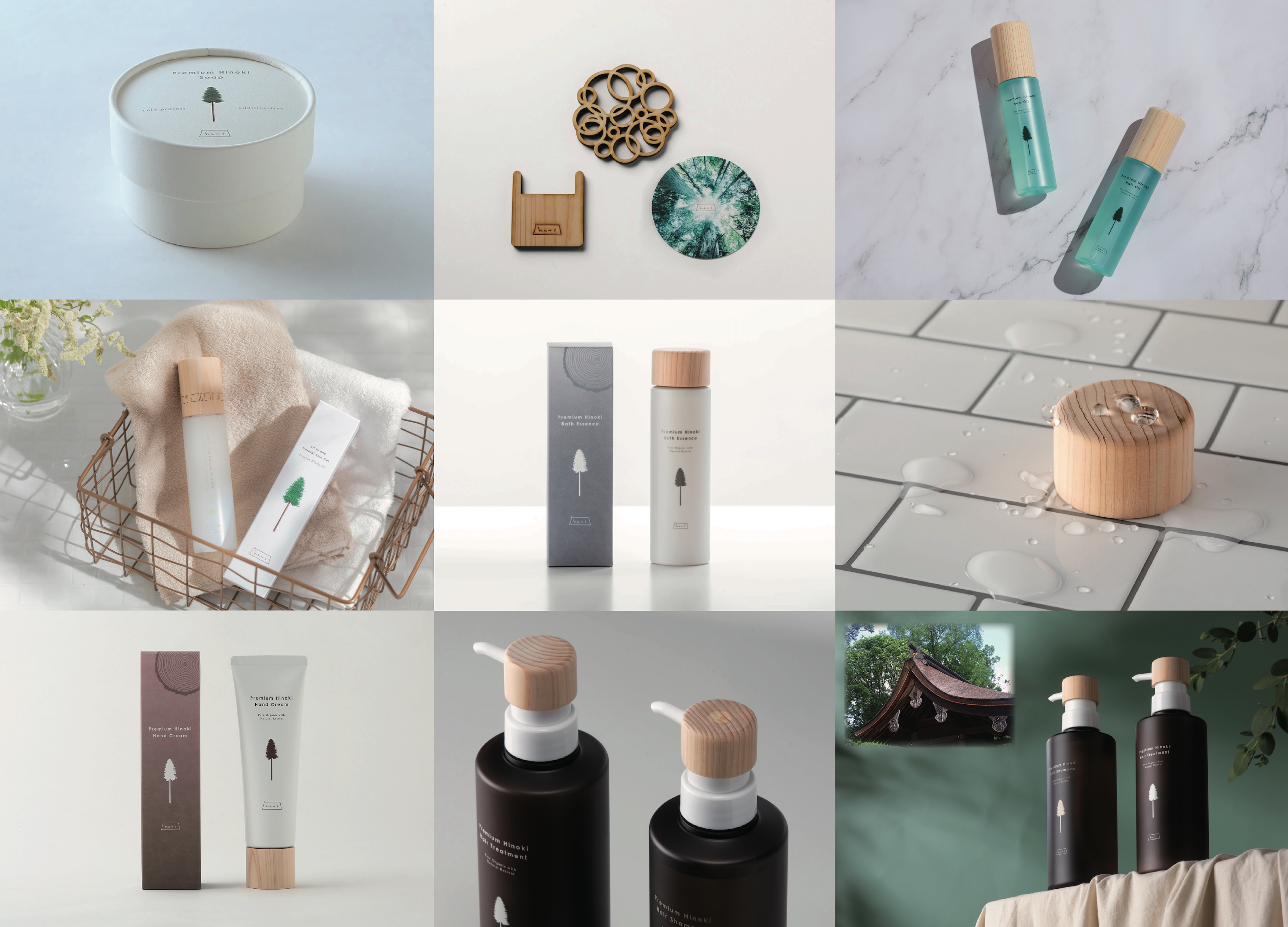 古来より木造建築や歴史文化を支えてきた日本を代表する樹種「桧」。その油分には抗菌、消臭、防虫、肌の保湿柔軟化促進、心を整える鎮静効果が認められる。社会の変化で人々が抱えるストレスを改善し清潔で健康な毎日を送れるよう、他者と自然環境への思いやり、天然由来成分、癒しの香りを融合させた資源再利用型製品群。