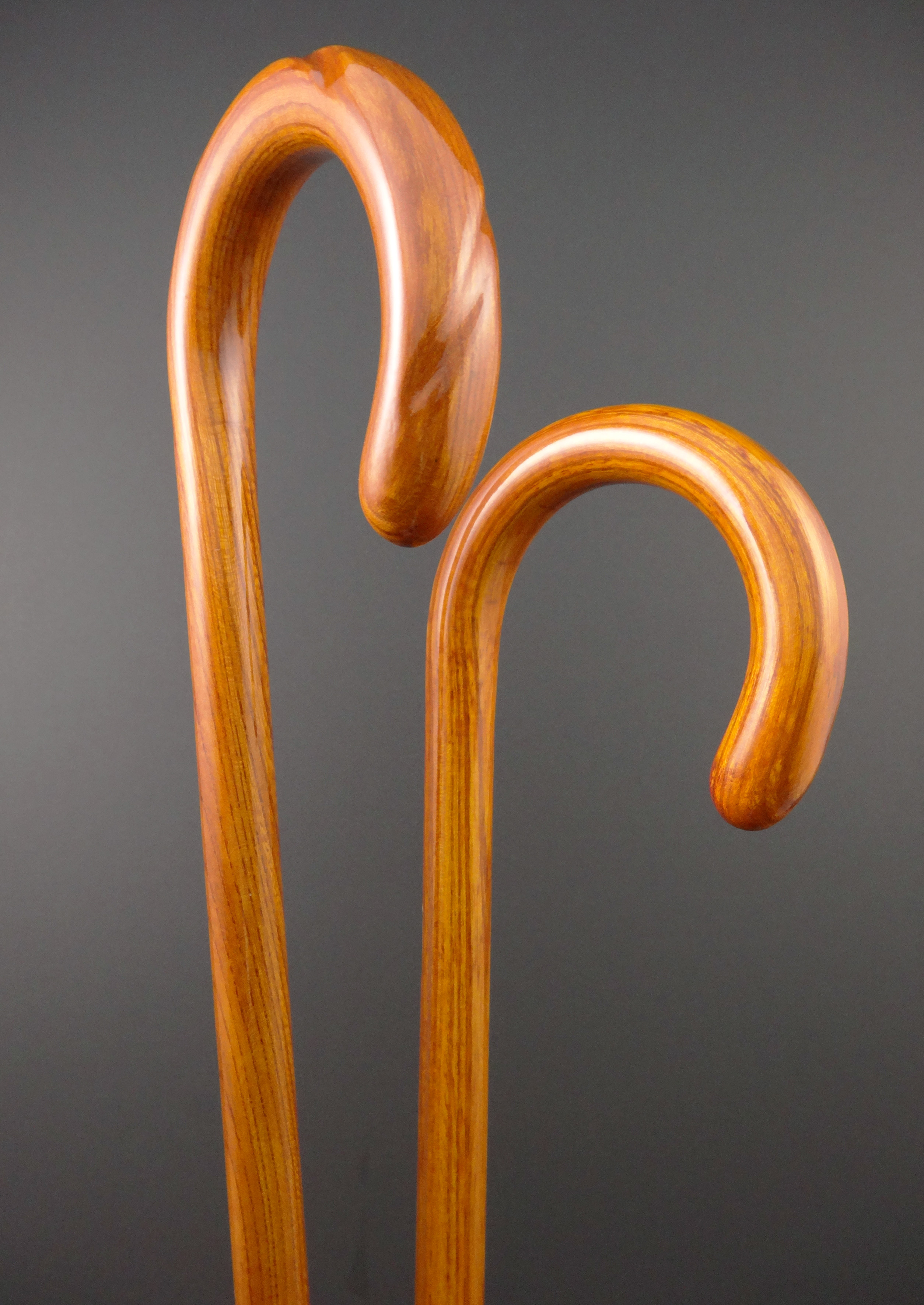 国産欅の無垢の角材を、伝統的な曲げ技術によって加工製作した丈夫で実用性のある大曲ステッキです。古来より神社仏閣の建築材料をはじめとして人々に木のぬくもりを提供してきた国産材の代表格である欅の杢目の美しさと、木を曲げるというステッキ製造の伝統技術の融合を手にとって感じることの出来る仕上がりです。表面塗装仕上げにはウレタン材を使用し、人や環境に優しい素材を使用しております。
