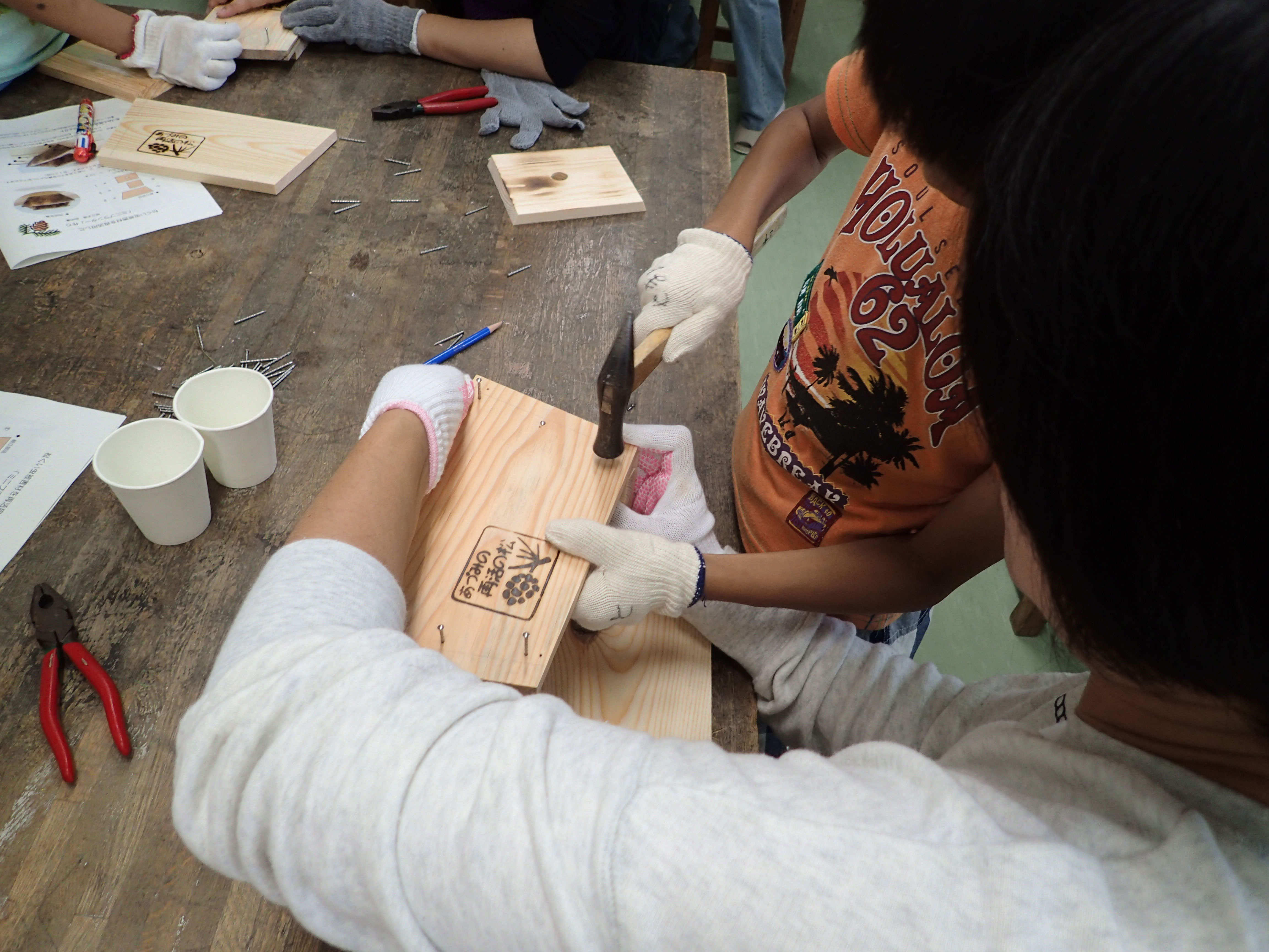 地域の歴史の一部であるアカマツを起点にした活動である。松枯れ材を活用した活動や製作を通じて、街と森の関係を考え、問題解決の意識を醸成させている。