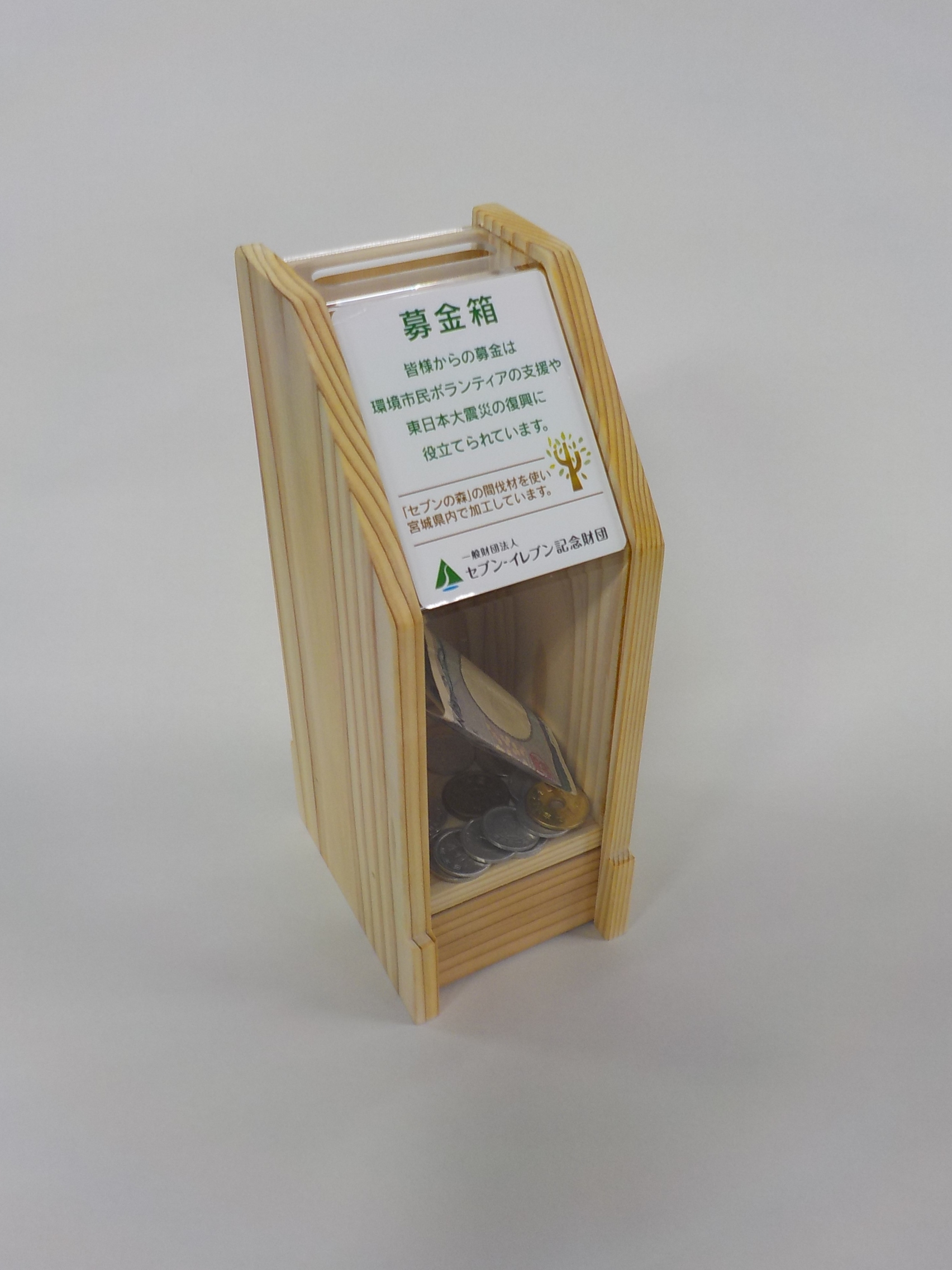 一般財団法人セブン-イレブン記念財団が2006 年から取り組んでいる「健全な森づくり活動」です。地球温暖化防止対策、生き物豊かな森づくり、美しい景観や環境の保全、環境学習など、行政や森林組合、NPO 法人などと協定を結び、「長期的な視点で継続して活動する」をキーワードに全国15 ヶ所の「セブンの森」では地域のセブン‐イレブン加盟店と本部社員が森づくり活動を行っております。セブンの森の間伐材を活用したセブン‐イレブン店頭募金箱の作成や2015 年4月に開校した「高尾の森自然学校」の管理棟は、「宮城セブンの森」の間伐材で建築されています。またセブン&アイ・ホールディングスでは紙製飲料容器の商品化、セブンカフェ(年間約4億6千杯)のホットカップ、グループ社員の名刺作成などを進めています。木の本来の特長を最大限に活かした「モノづくり」にも取り組み、「木を循環させる日本文化」で人と人の交流を育みたいと考えています。