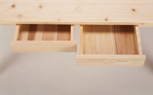 ヒノキの無垢材を使った多目的に使えるサイズオーダー対応のシンプルな4本脚テーブル。装飾をぎりぎりまで排除したシンプルさで、木の質感を楽しめる。長く使いたくなるテーブルである。