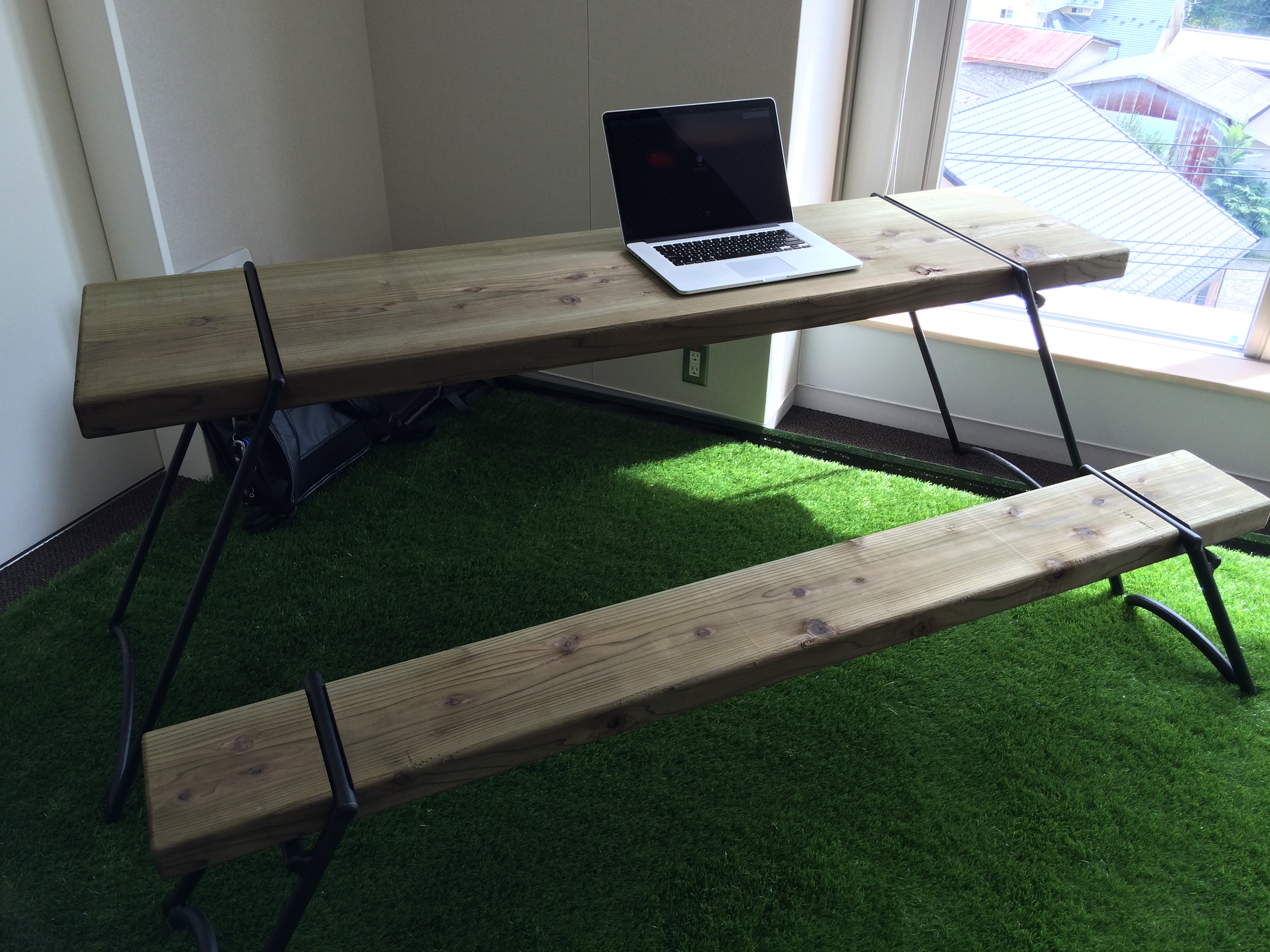 3つのパーツに分けて移動できるので可搬性に優れ、アウトドア仕様や屋外イベント用として汎用性がある。ベンチ自体にスリットを入れ座面がフラットになるため、座りやすい。
