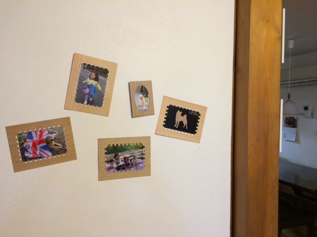 壁面や柱に直接貼れるシールタイプの木製フォトフレーム。DIY製品として国産のヒノキ、スギを使用したものは貴重である。暮らしを彩るアイテムとして使いたい。