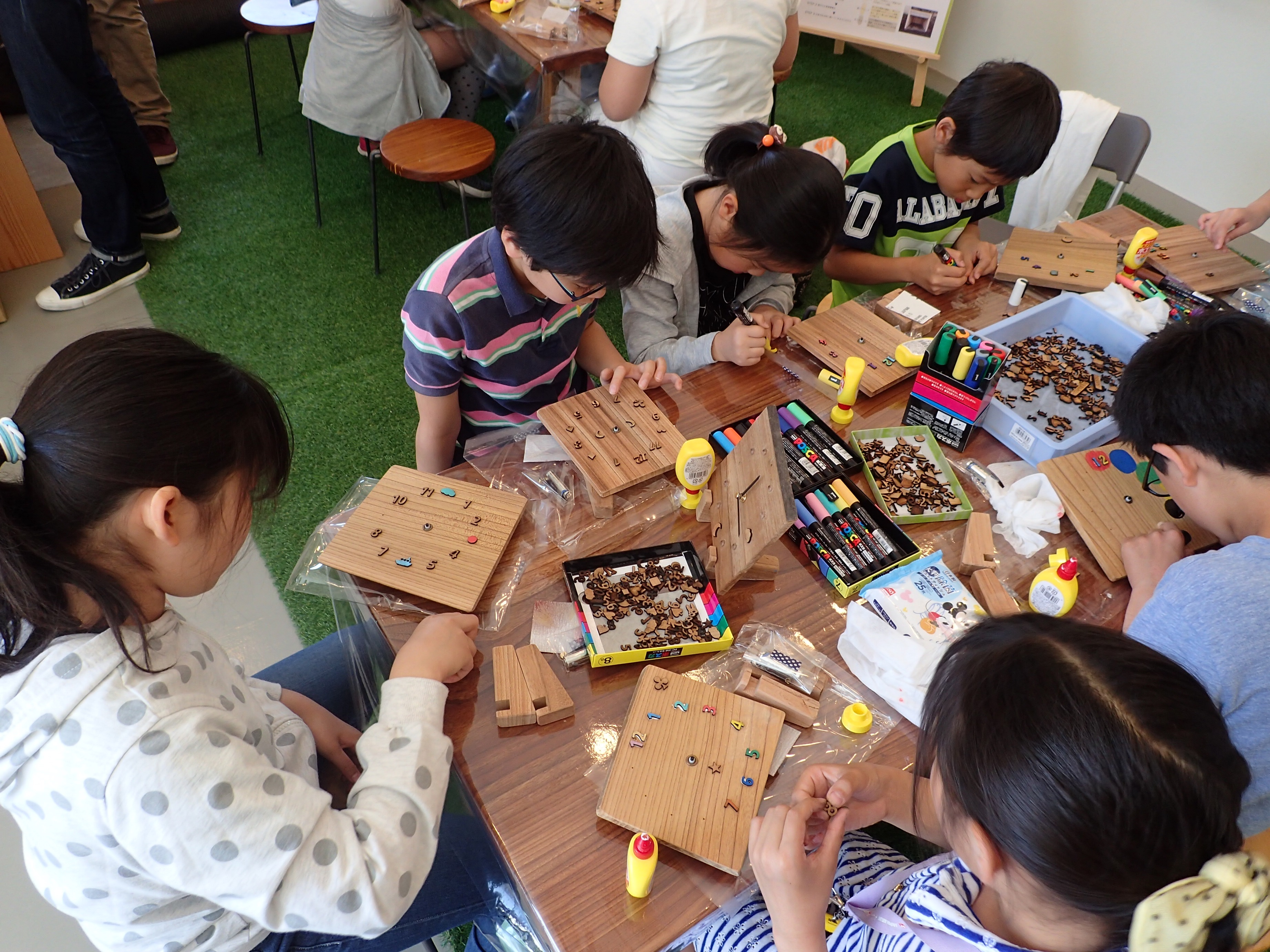 ワークショップ費 木の時計作り 500円/人、木の電車づくり 500円/人