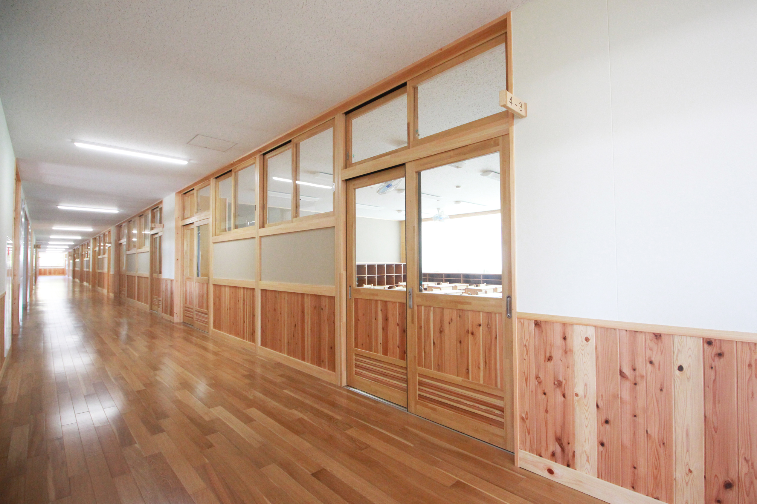 多様な事業者の連携と協働による地域のFSC(C)認証材活用を展開する同市の、事業展開における最初の物件である。生徒や来校者に認証材の理解促進を進めるとともに、地域団体、事業者のバリューチェーン化を実現した意欲的取組である。