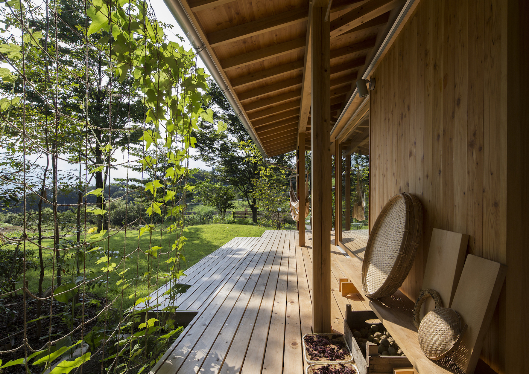 建物だけでなく、庭や周りの環境など住む人の暮らし方も含めた考え方で建てた家。材料は材木から塗り壁まで自然素材のみ。年月を経て朽ちる時には、全てが土に還る。庭では野菜を育て、それを食す。生ゴミはコンポストで有機肥料となり次の作物の栄養になる。雨水をためて散水し、太陽光で湯や電気を作る。