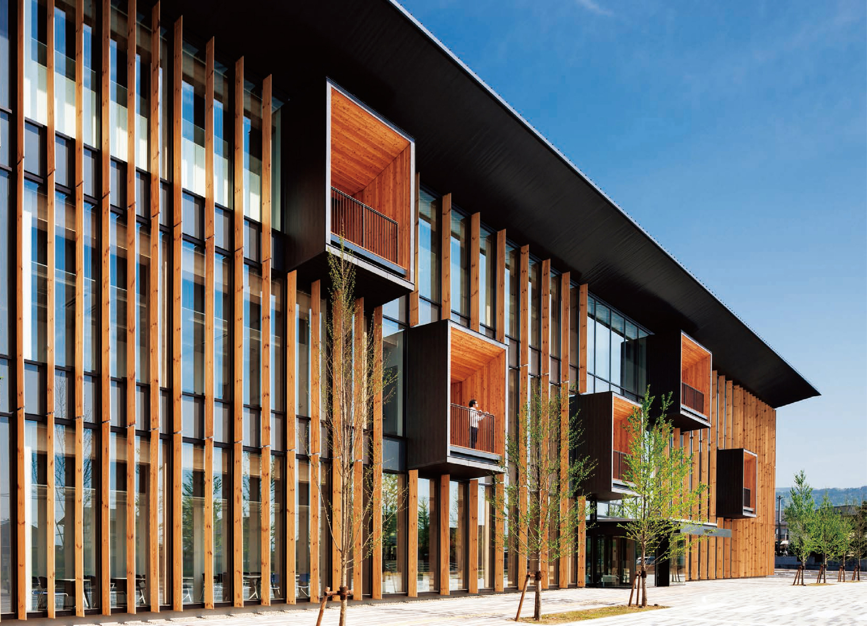 被災した庁舎の新築計画であり、木に包まれた外観が印象に残る。地域材を使用することで、地域への親しみと貢献を形にするとともに、広場を使った開かれた空間づくりも好感が持てる。