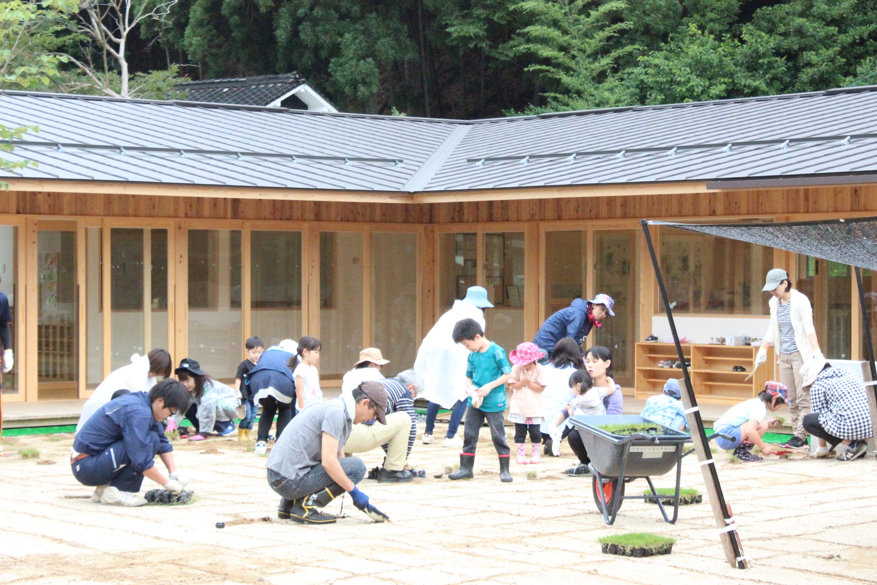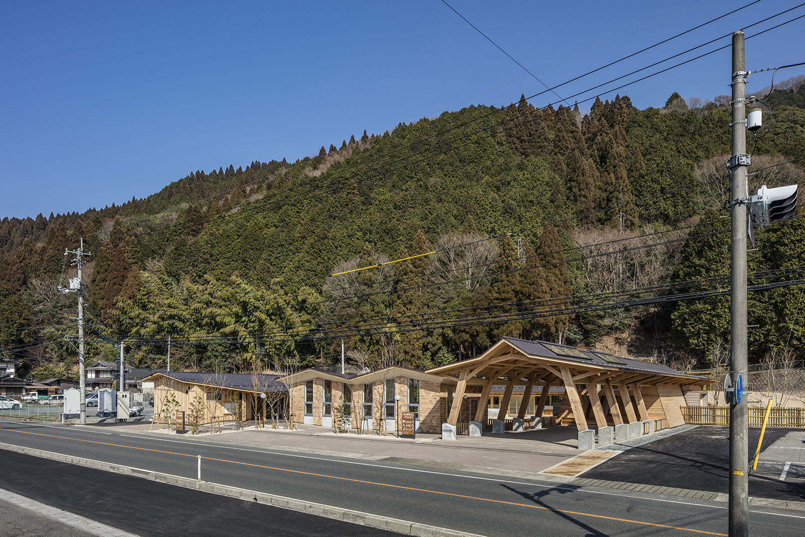 林業に先進的な試みを続ける人口1500人の西粟倉村に建つ、村にたったひとつの保育園。2016年7月の設計プロポーザルにより受託した。小さな自治体における公共施設のため、単なる保育園にとどまることなく、村のさまざまな行事や活動に積極的に使われる公共空間、サードプレイスとして計画された。